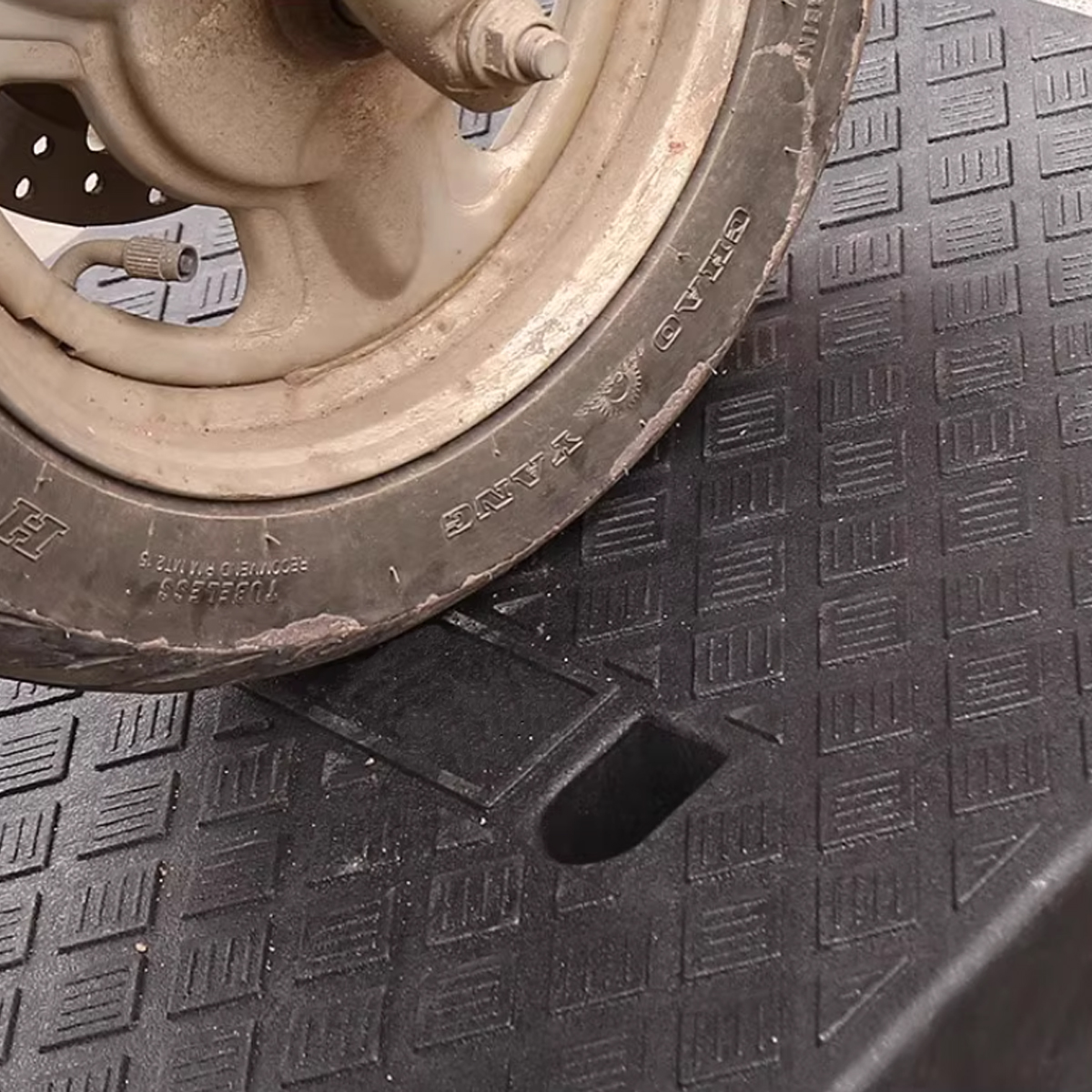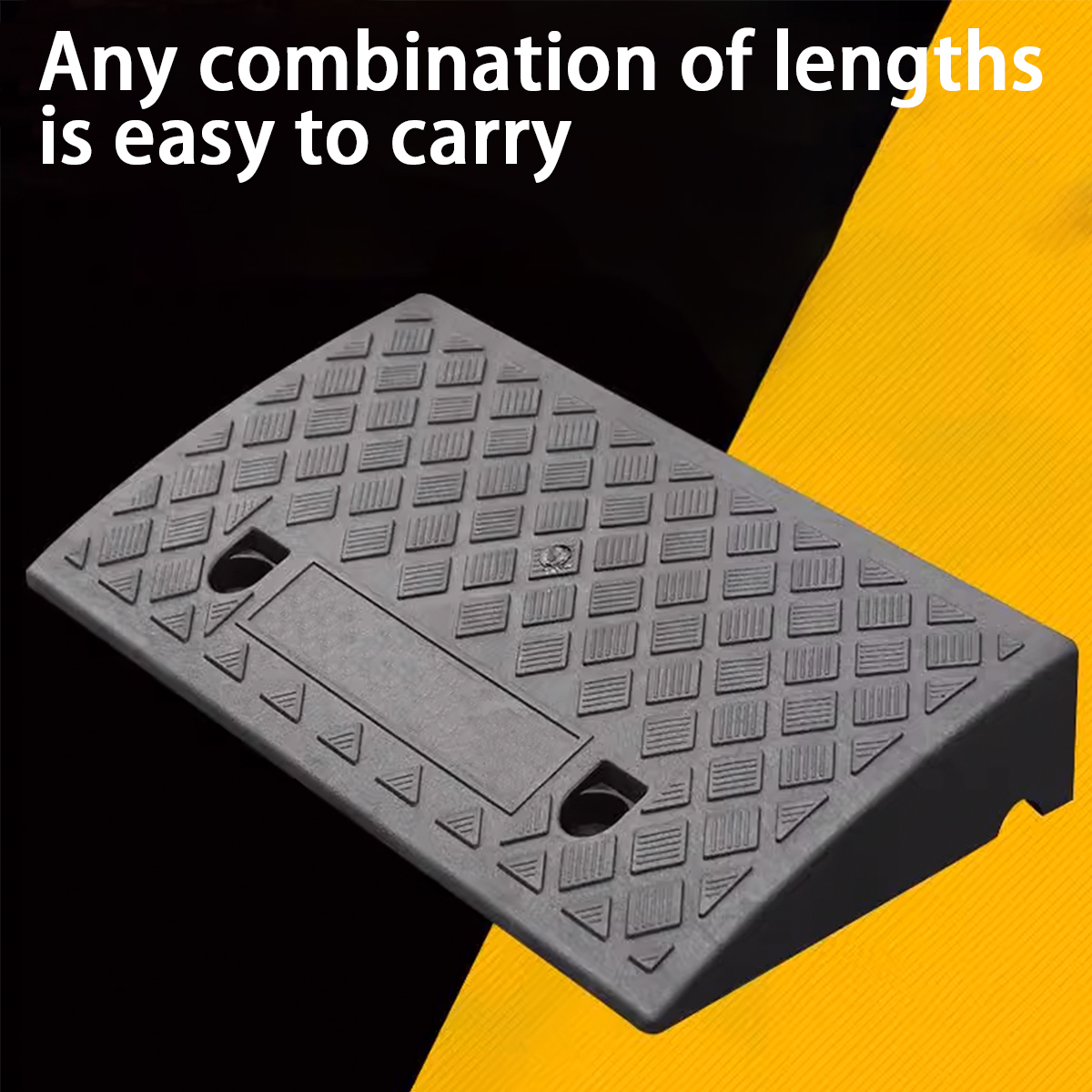 Lightweight & Flexible – The multi-purpose driveway ramp is extremely lightweight, making it easy to move or transport from one place to another. You can carry it with you or store it in a bag for on-the-go use. The rubber's elasticity, damping, and noise-reducing properties significantly diminish vehicle impact, reducing shock, providing excellent vibration absorption, and lowering noise.