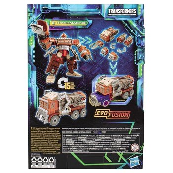 This collectible figure converts from robot to waste disposal truck mode in 15 steps, showcasing classic Transformers engineering and design. Equipped with an articulated trash compactor arm, Trashmaster features Evo-Fusion technology that allows him to break apart and combine with other Transformers: Legacy Evolution figures to form indestructible Junkion armor (each sold separately).