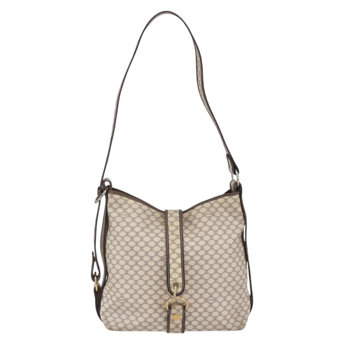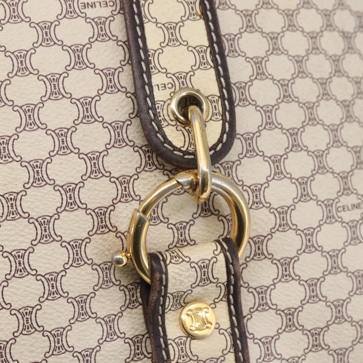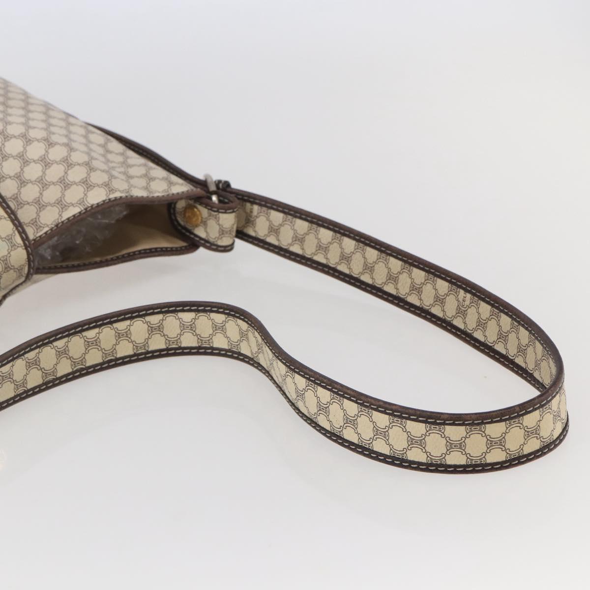 CELINE Macadam Canvas Shoulder Bag PVC Leather White gold Auth 143583