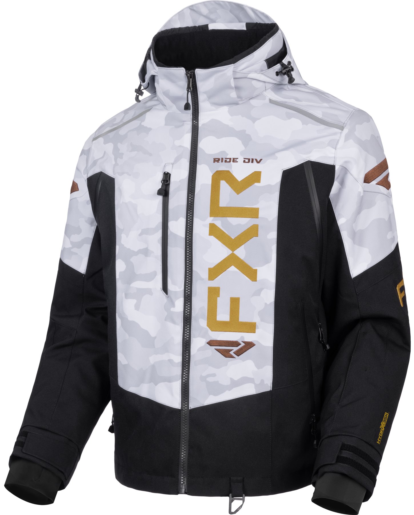 FXR Helium X Mens 2-In-1 Snow Jacket White/Camo/Gold MD |