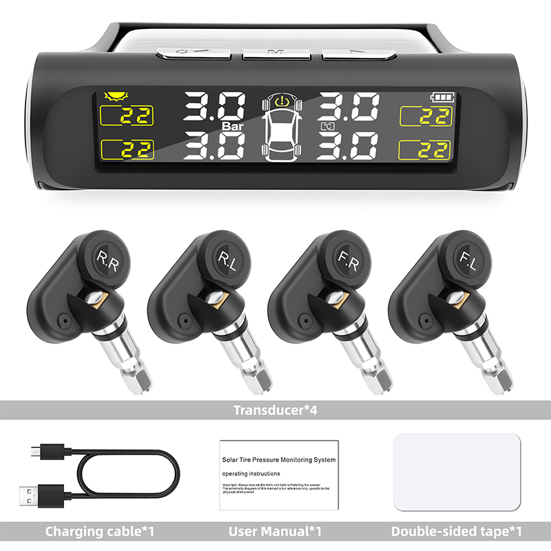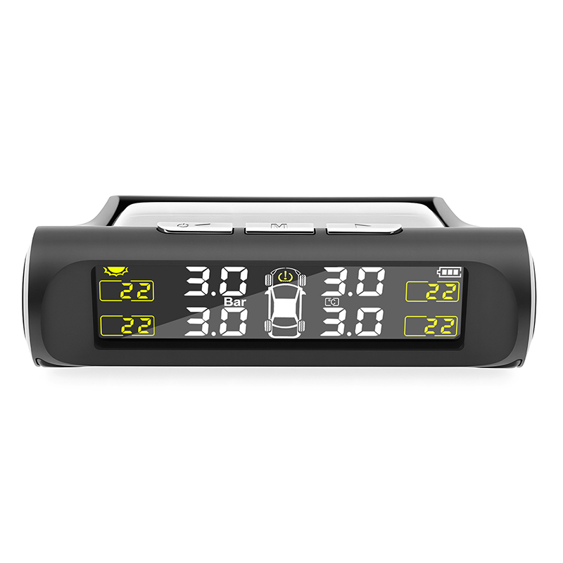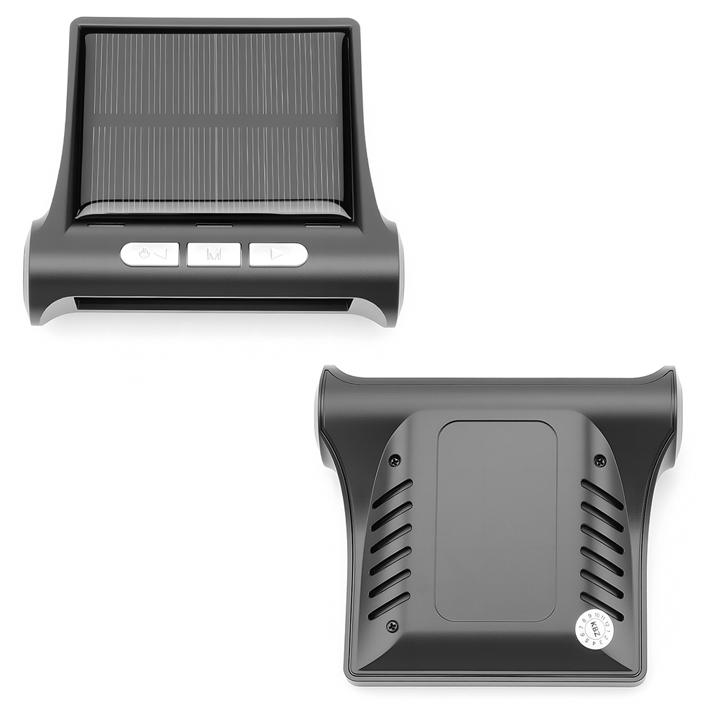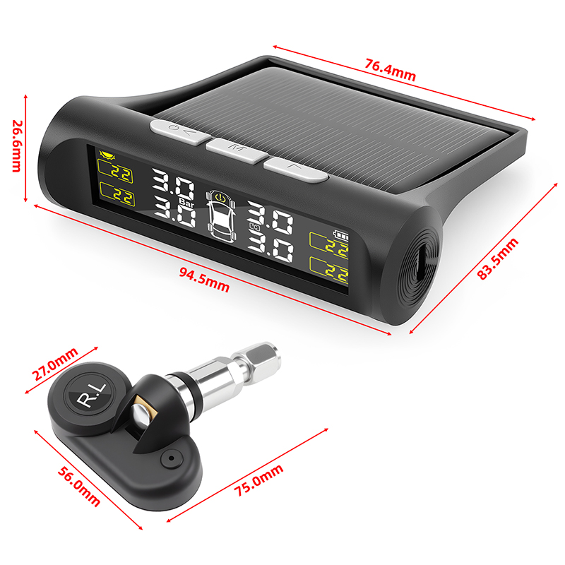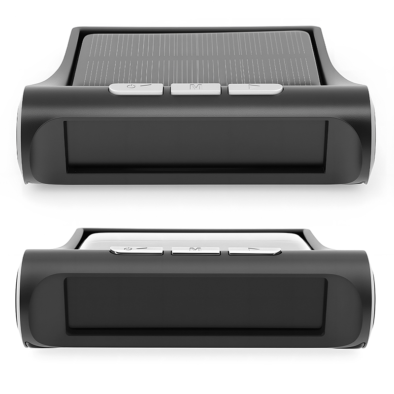 Real-Time Monitoring with LCD Display : The solar-powered TPMS provides full-screen digital readouts of tyre pressure (bar/psi) and temperature (°C/°F). Features a recessed anti-glare display with flashing alerts and loud alarms for critical warnings, ensuring clear visibility in all lighting conditions