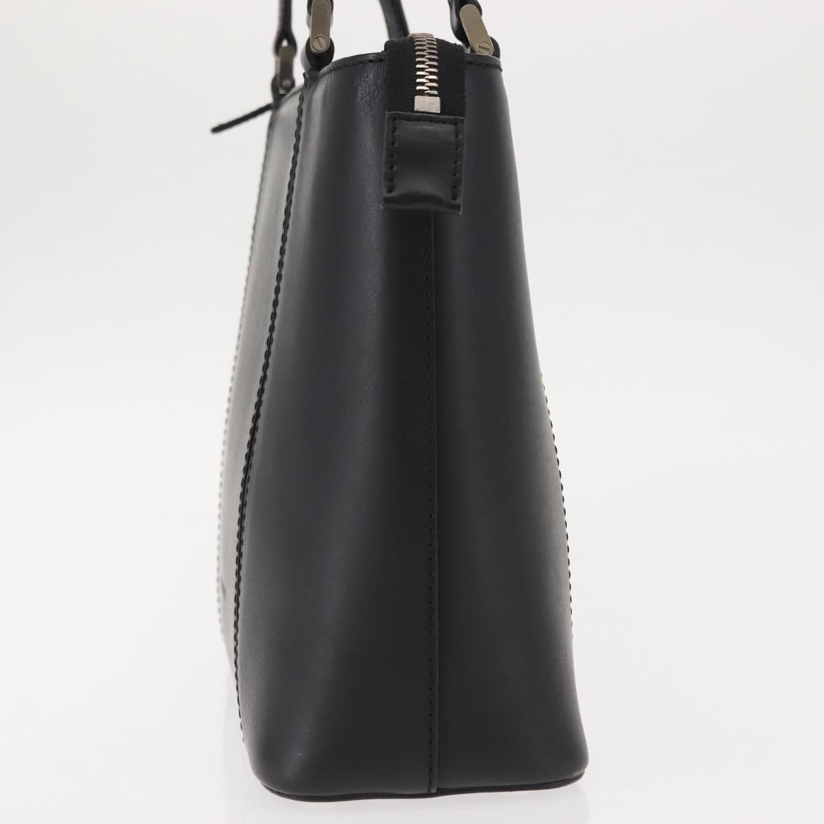 BURBERRY Hand Bag Leather Black Silver Auth am9355