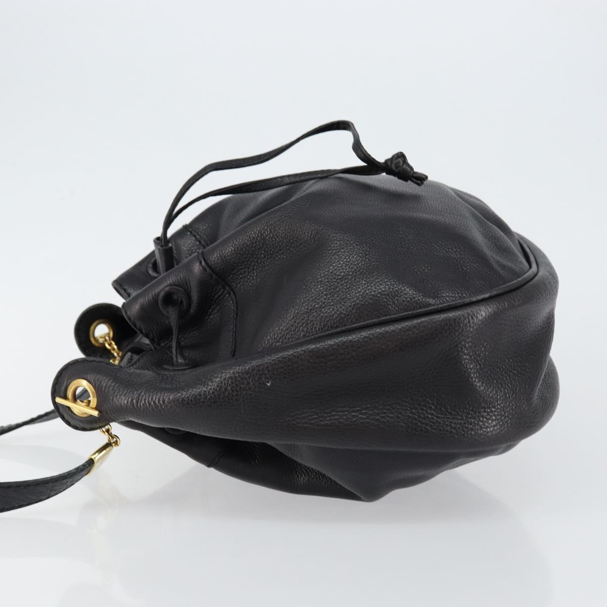 BOTTEGA VENETA Shoulder Bag Leather Black Gold Auth bs29943