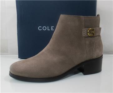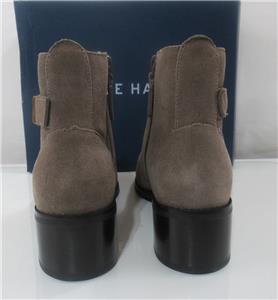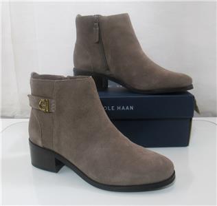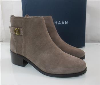 | Details | Step up in style and comfort by wearing Cole Haan® Holis Buckle Bootie. The stacked-heel ankle bootie has a leather upper with textile lining and polyurethane insole that makes them suitable for all-day wear. The inside zipper closure with Cole Haan® buckle detail adds style to the boots - Fully padded leather sock lining - Ankle -high boots - Almond toe design |