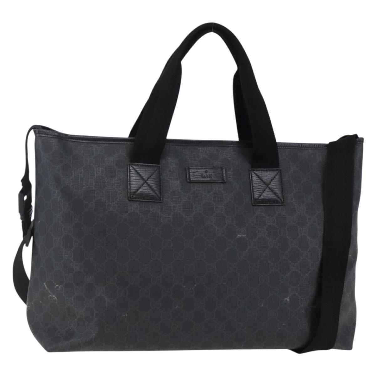 GUCCI GG Supreme Tote Bag PVC Leather 2way Black 162785 Auth bs29492