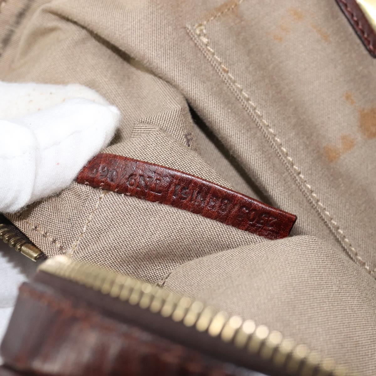 FENDI Zucchino Canvas Tote Bag Brown Gold Auth 146282