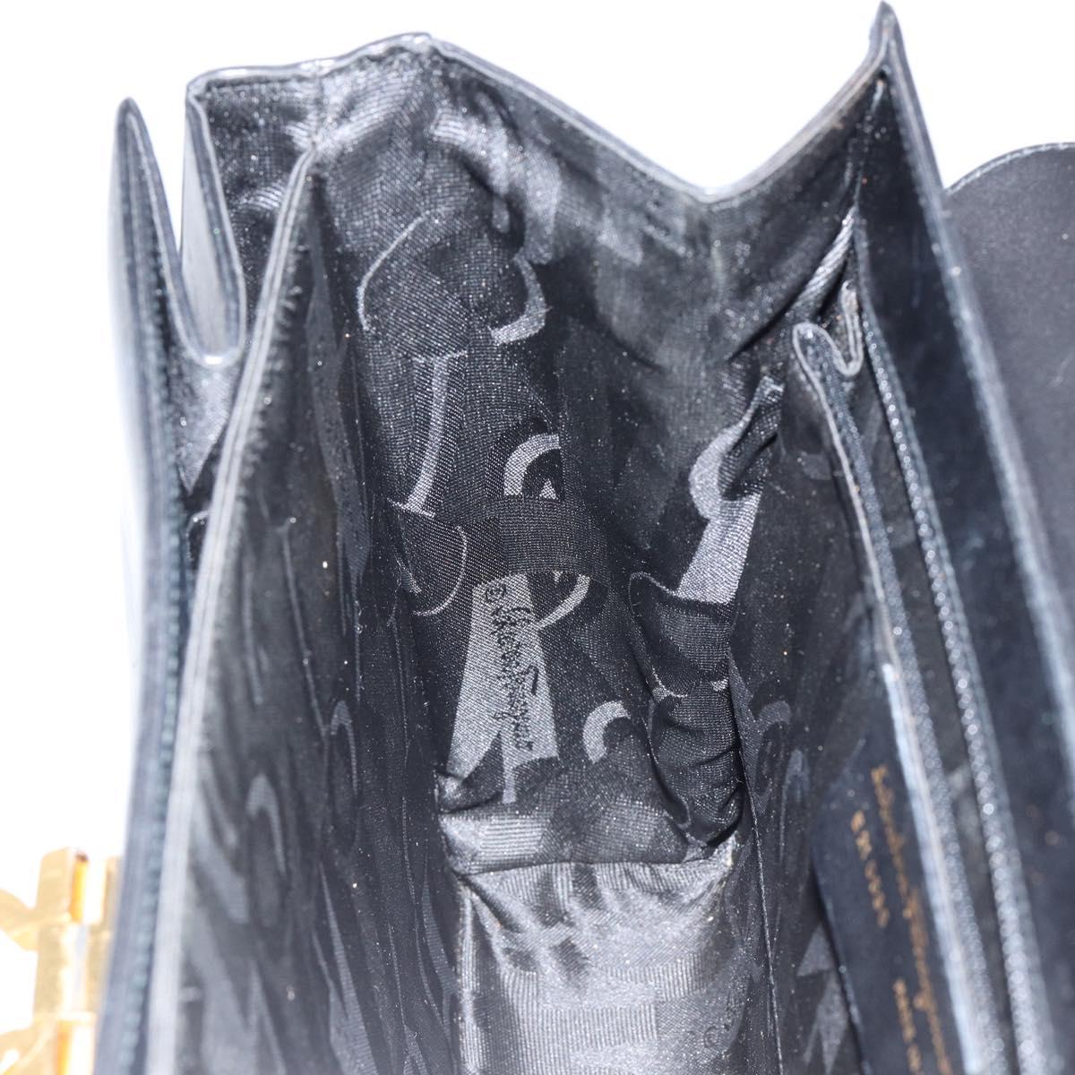 Salvatore Ferragamo Gancini Hand Bag Leather 2way Black Gold Auth 147387