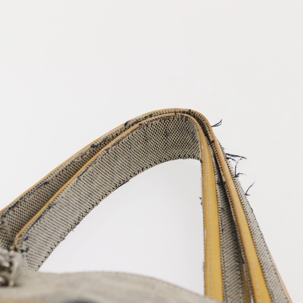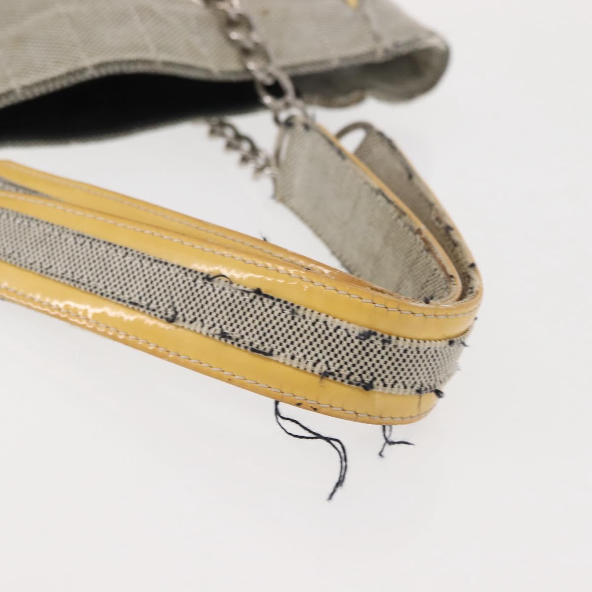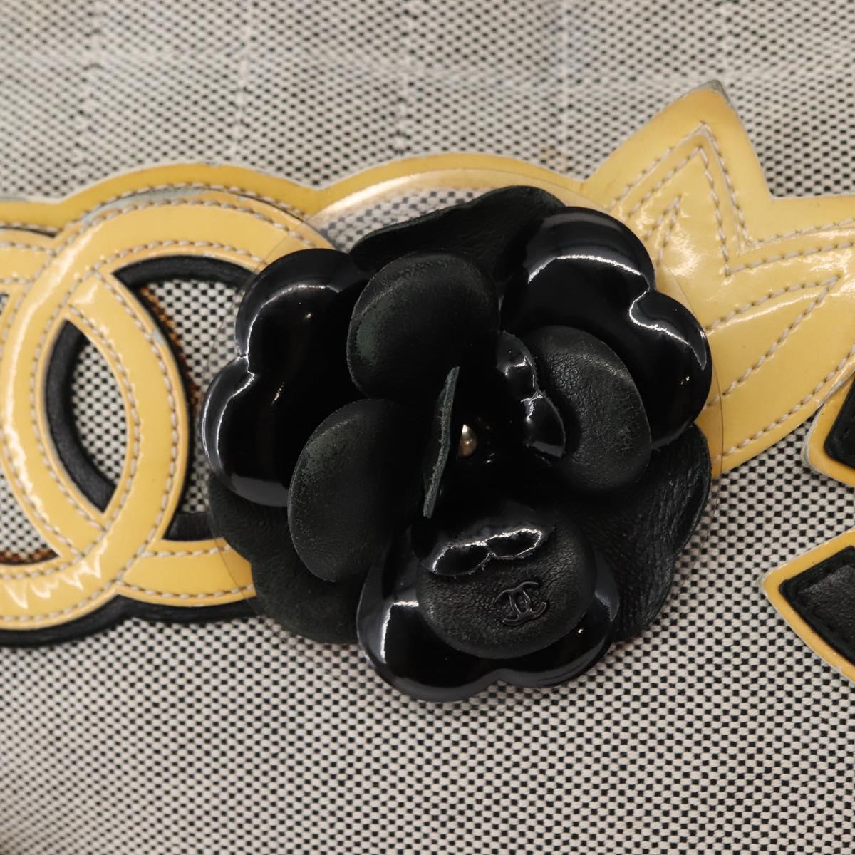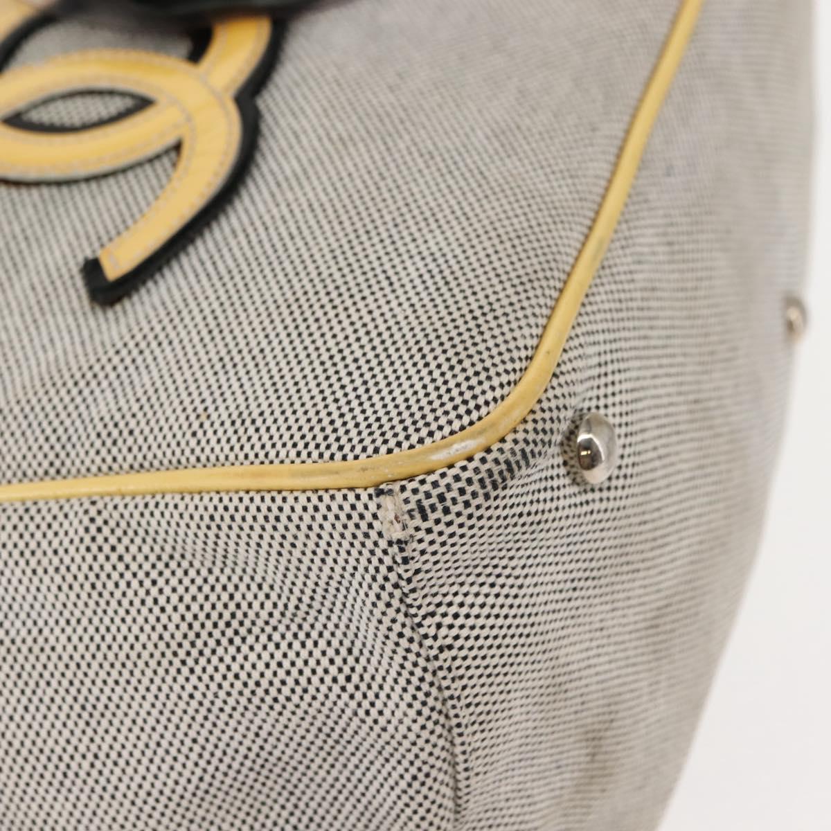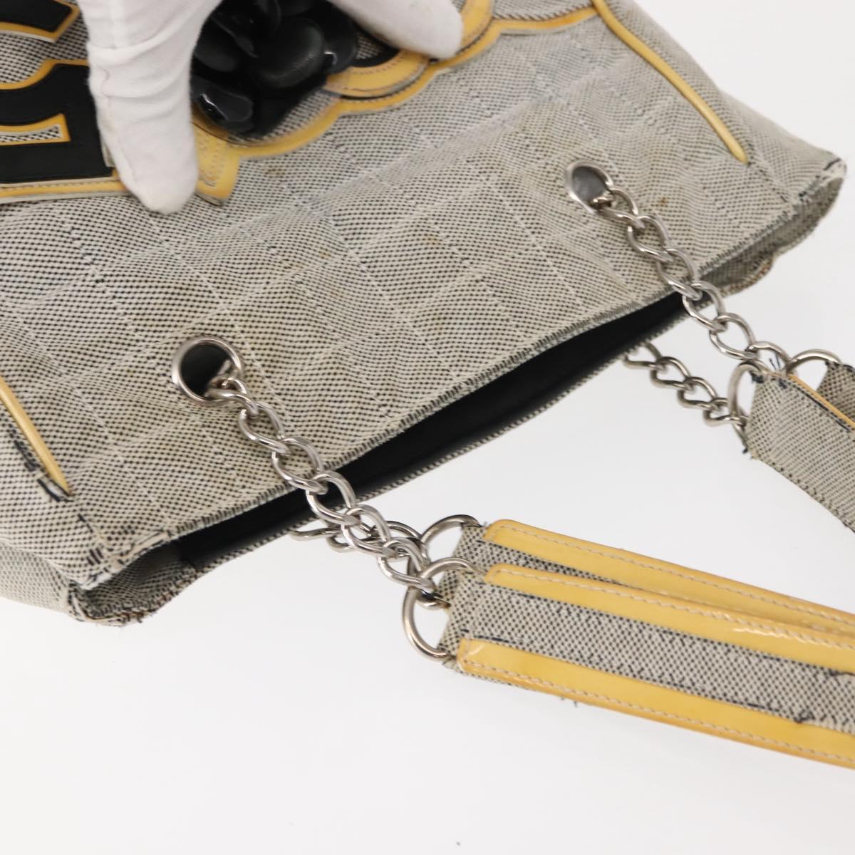 CHANEL Choco Bar Camellia Chain Tote Bag Canvas Gray Silver CC Auth 148029