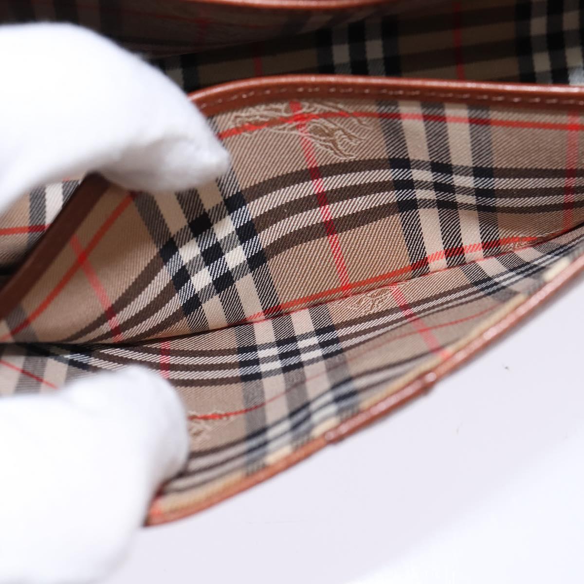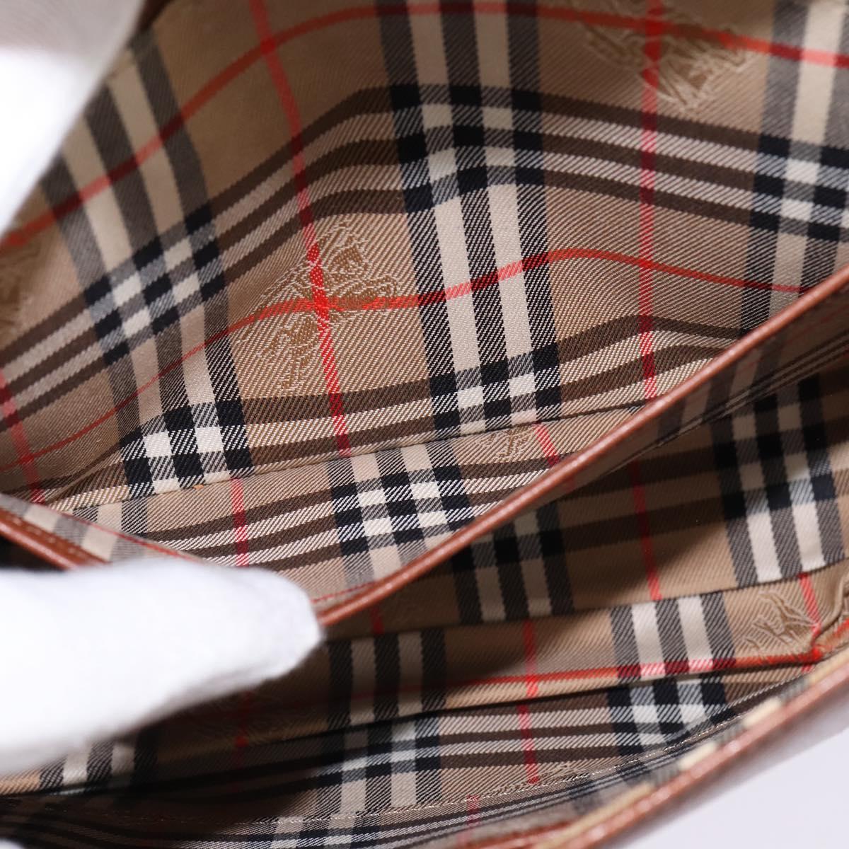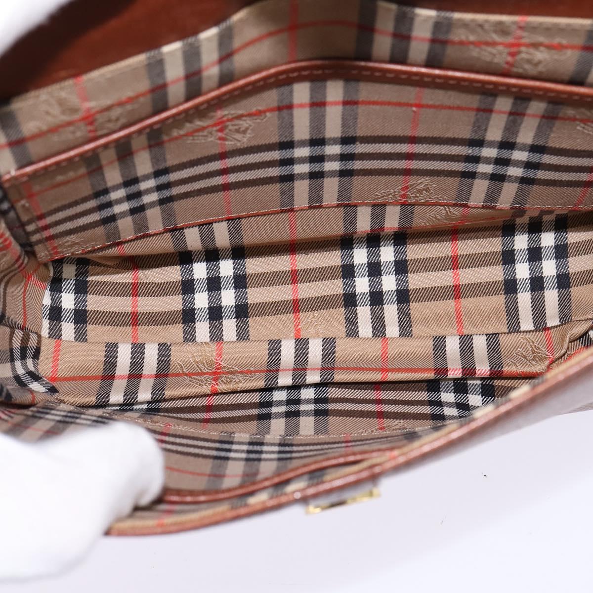 Burberrys Nova Check Shoulder Bag Leather Brown Gold Auth bs30266