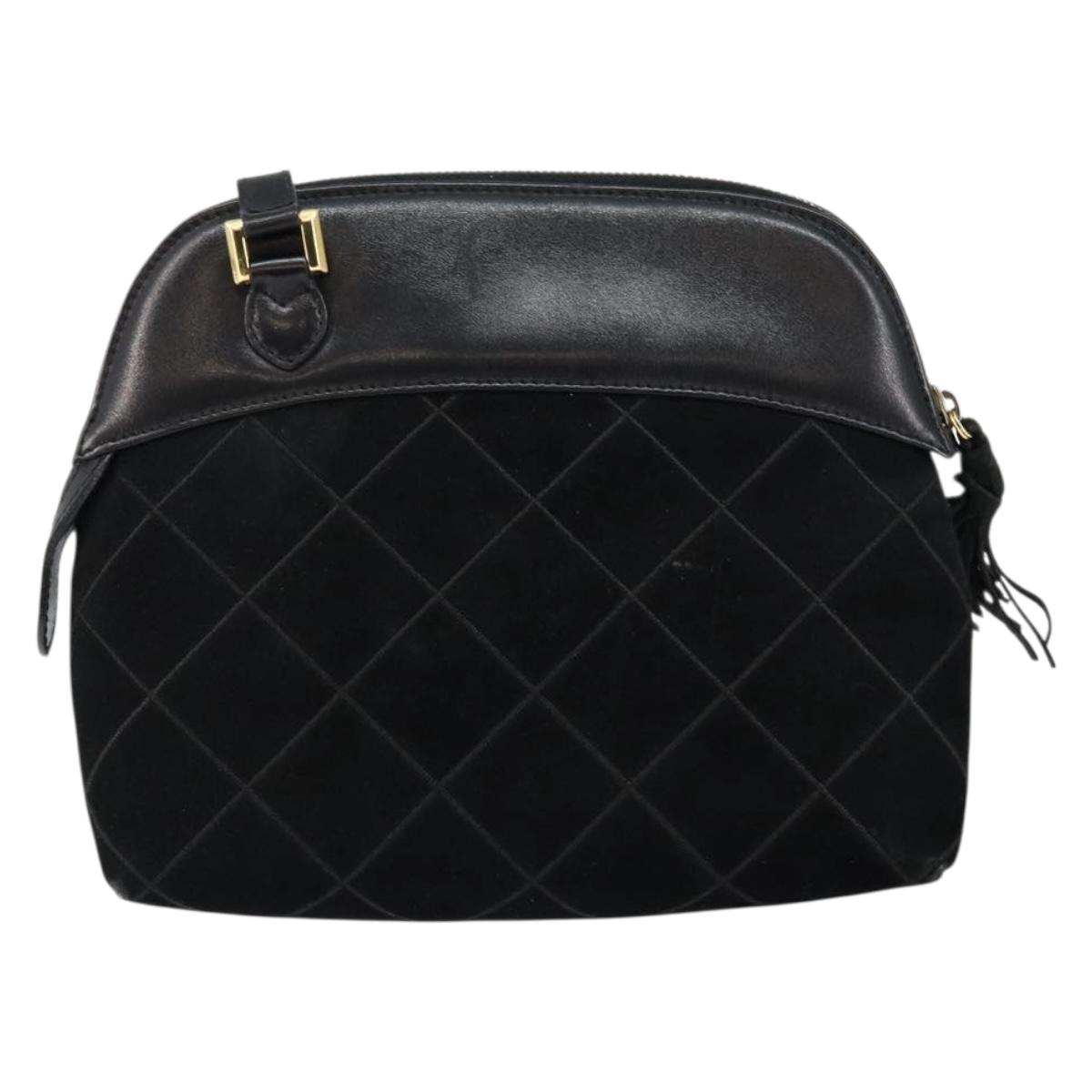 Salvatore Ferragamo Shoulder Bag Leather Suede Black Gold Auth BA7056