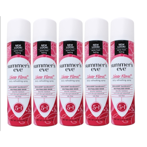 5 Pack Summer's Eve Sheer Floral Freshening Spray 2 Ounce