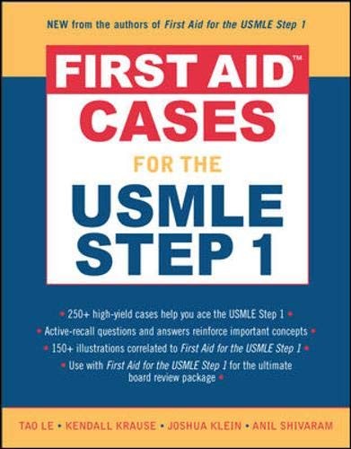 Essential in preparing for the USMLE Step 1, this comprehensive case book features 240 high-yield clinical cases, a unique one-case-per-page format, active recall questions and answers for each case, and more than 200 illustrations. Written by Dr. Tao Lee,this is the perfect study companion to his First Aid for the USMLE Step 1.