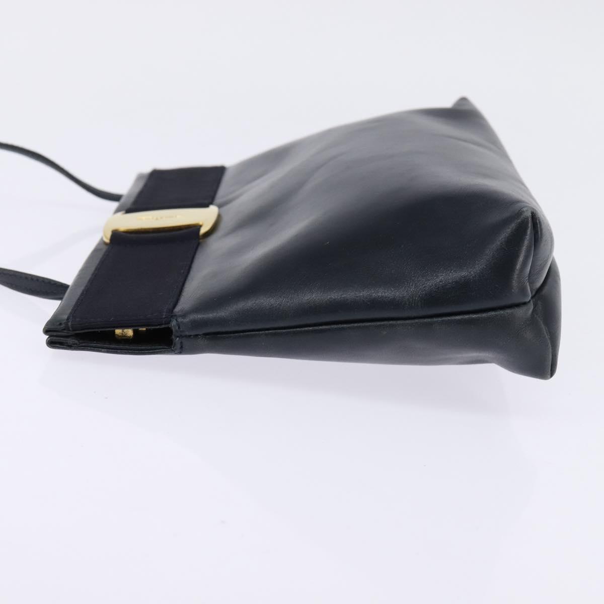 Salvatore Ferragamo Vala Shoulder Bag Leather Navy Gold Auth 148321