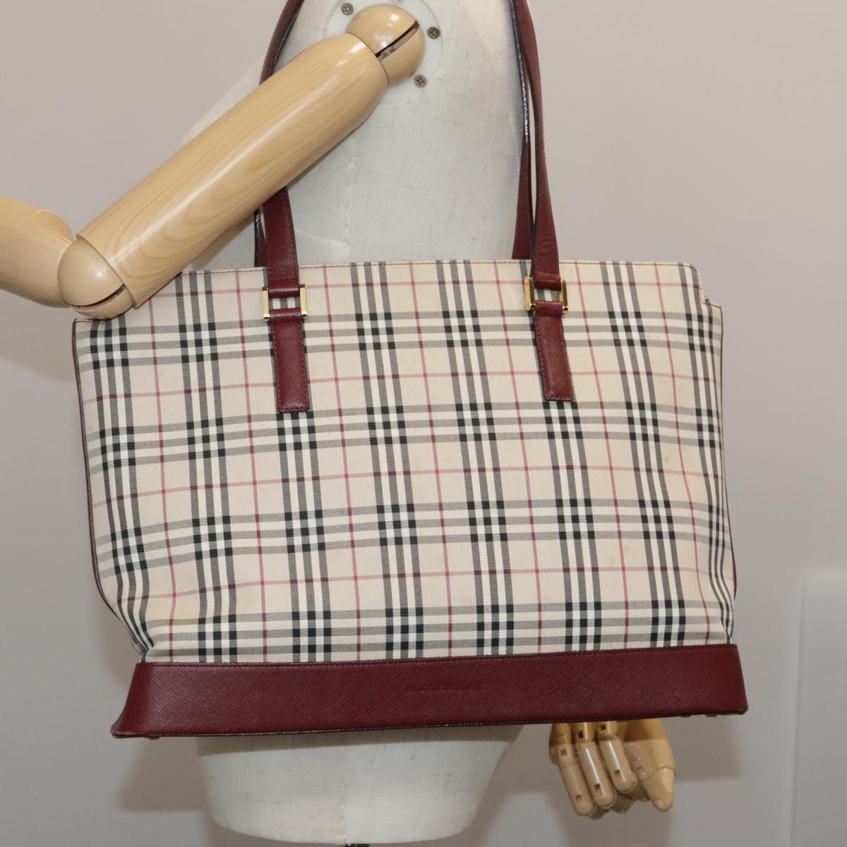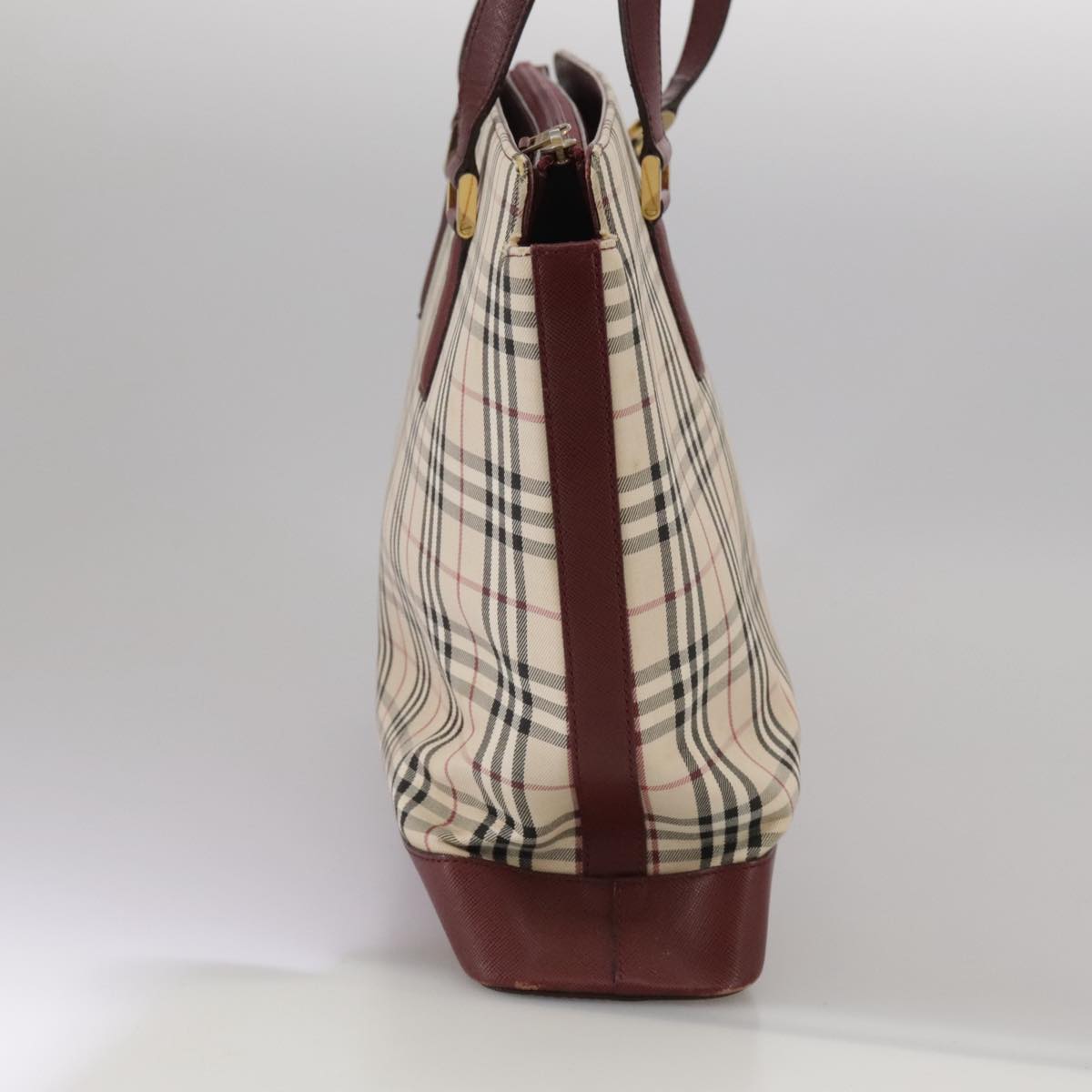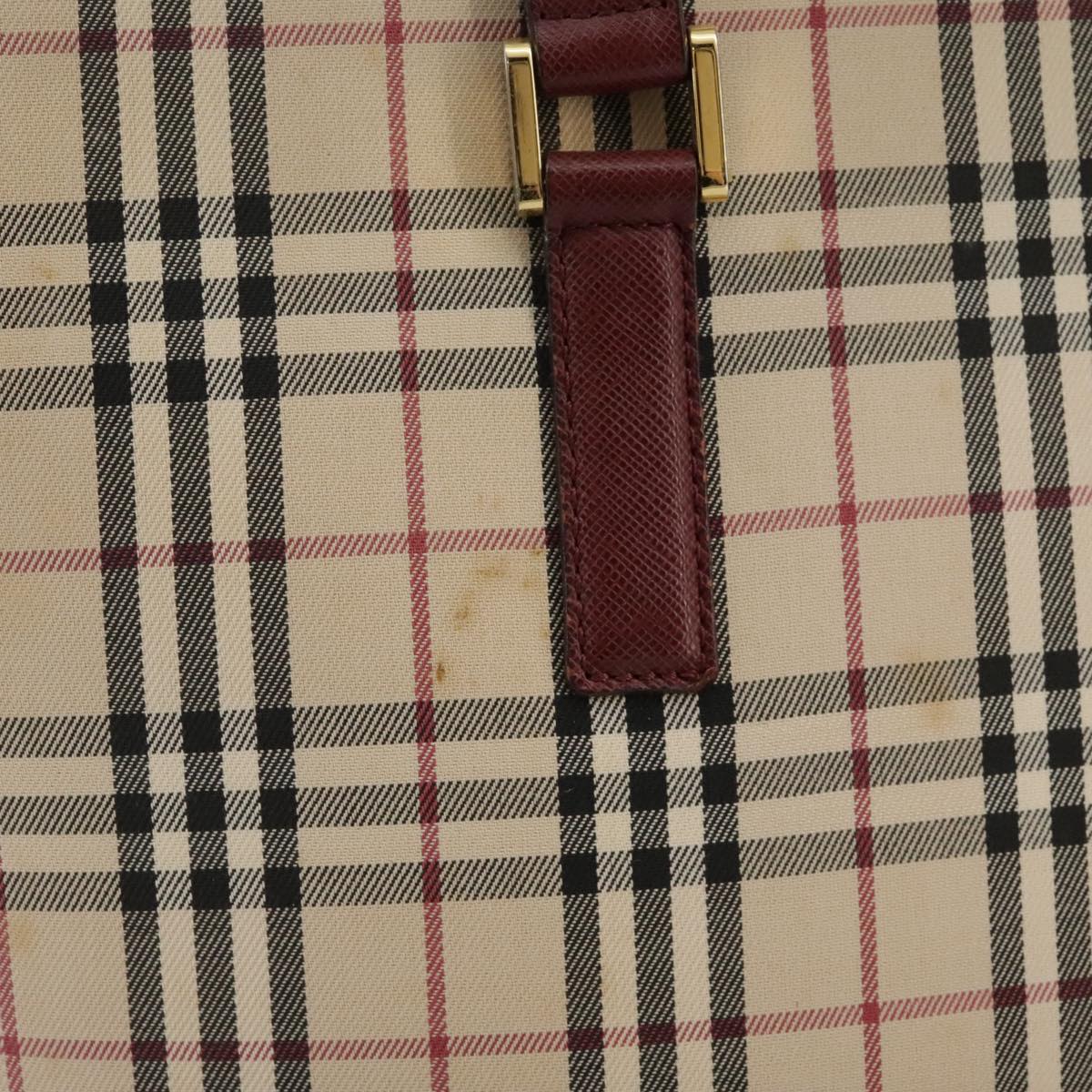 BURBERRY Nova Check Tote Bag Canvas Leather Beige Red gold Auth 111118