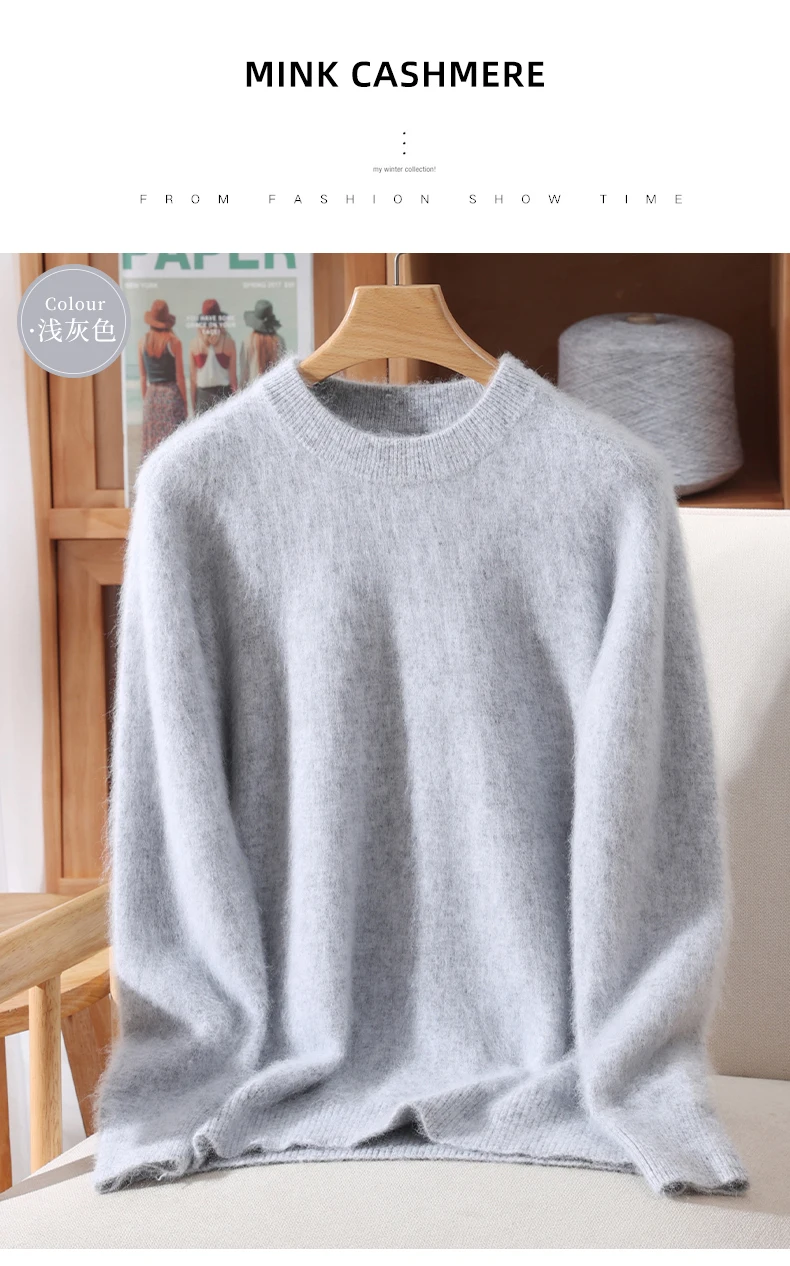 Crafted from premium mink cashmere, this sweater offers unparalleled softness and warmth for autumn and winter wear.