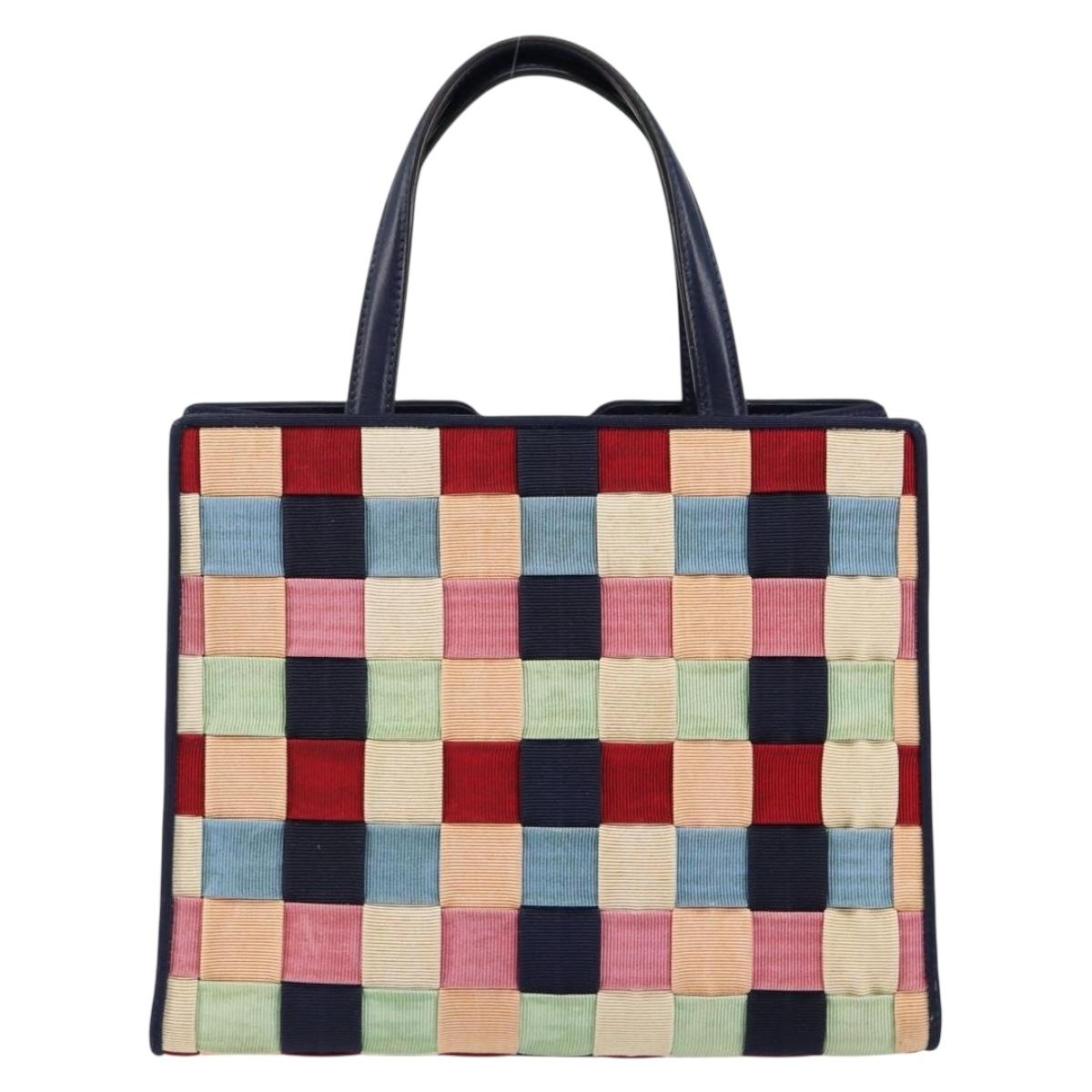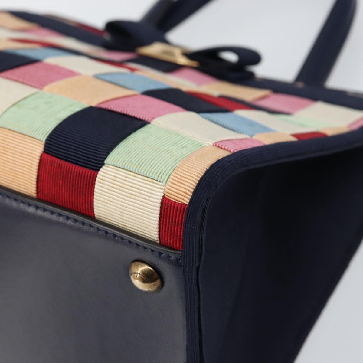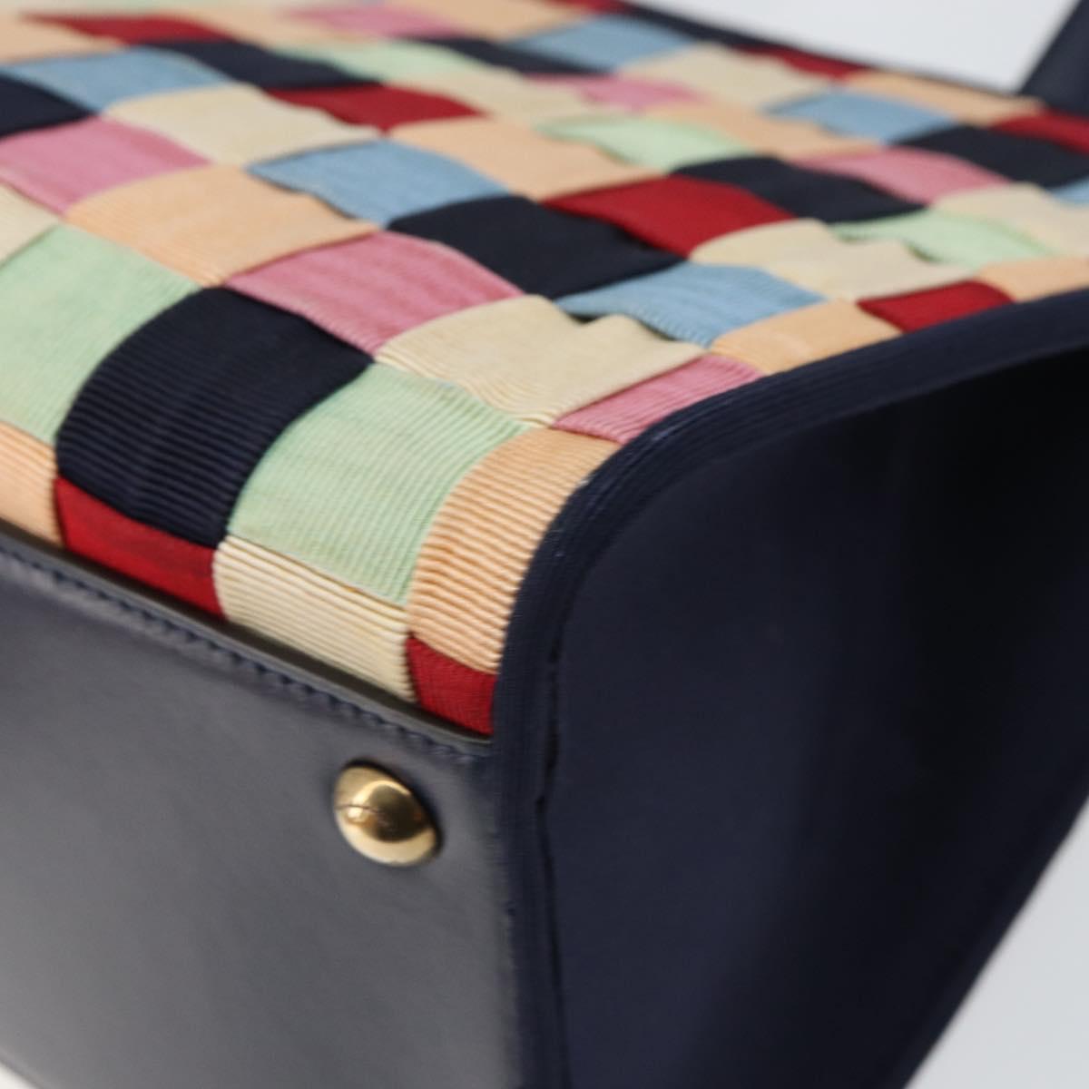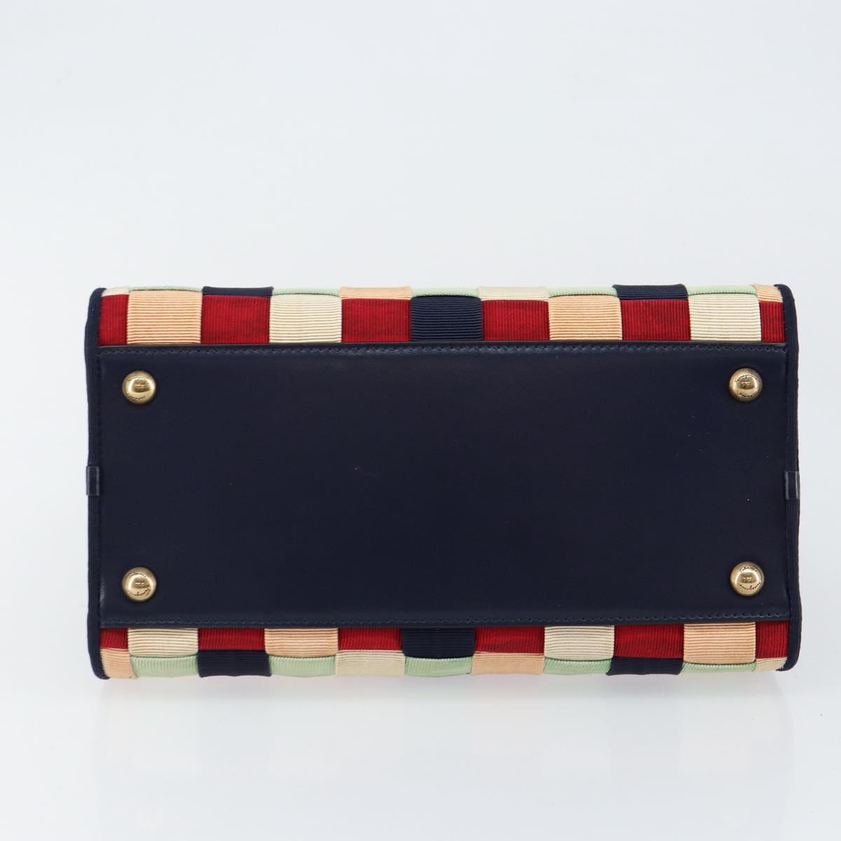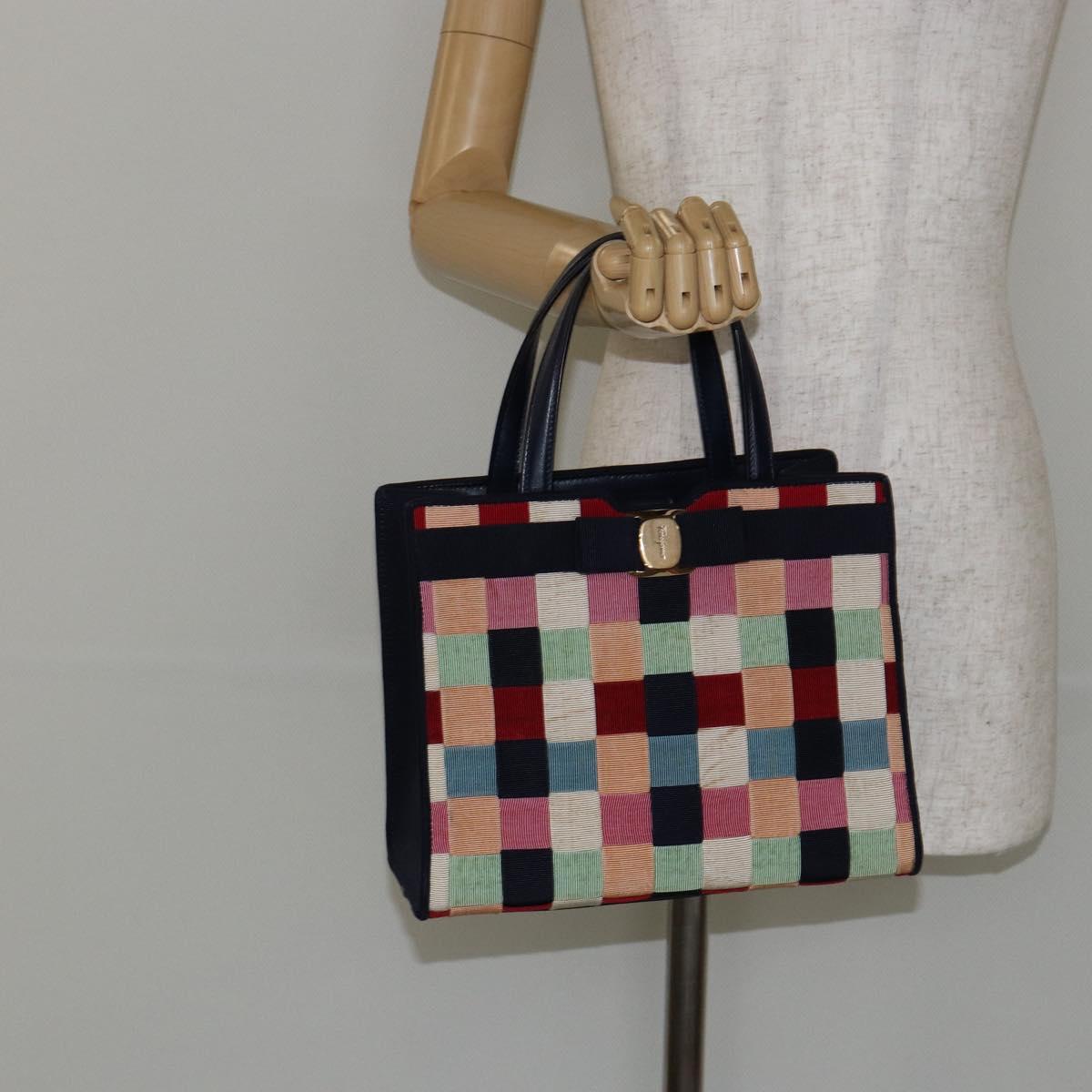 Salvatore Ferragamo Vala Hand Bag Nylon Navy Gold Auth 147506