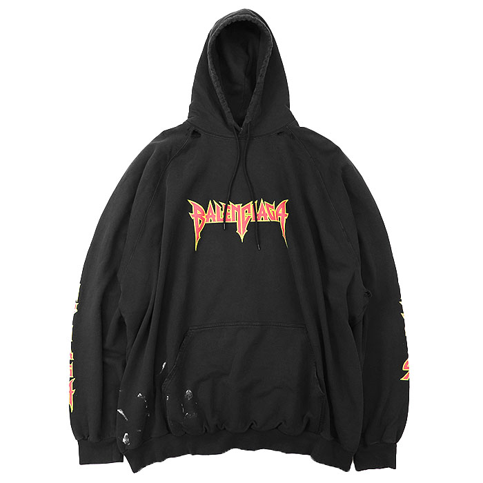 | Series | BALENCIAGA Men's 2022SS Hoodie with Cracking Logo Print and Distressed Metal Band-Style Sweatshirt, Long Sleeve, Size 5, Black |