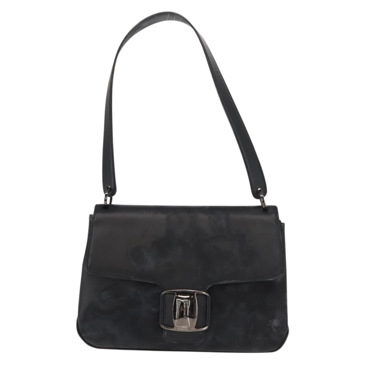 Salvatore Ferragamo Vala Shoulder Bag Leather Black Silver Auth gh1115