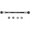 Enables connection of the Coho XC trailer to bikes with 12mm rear thru axles. Multiple thread pitches and lengths available. Stock thru axles are not able to accommodate any sort of axle mounted hitch system.