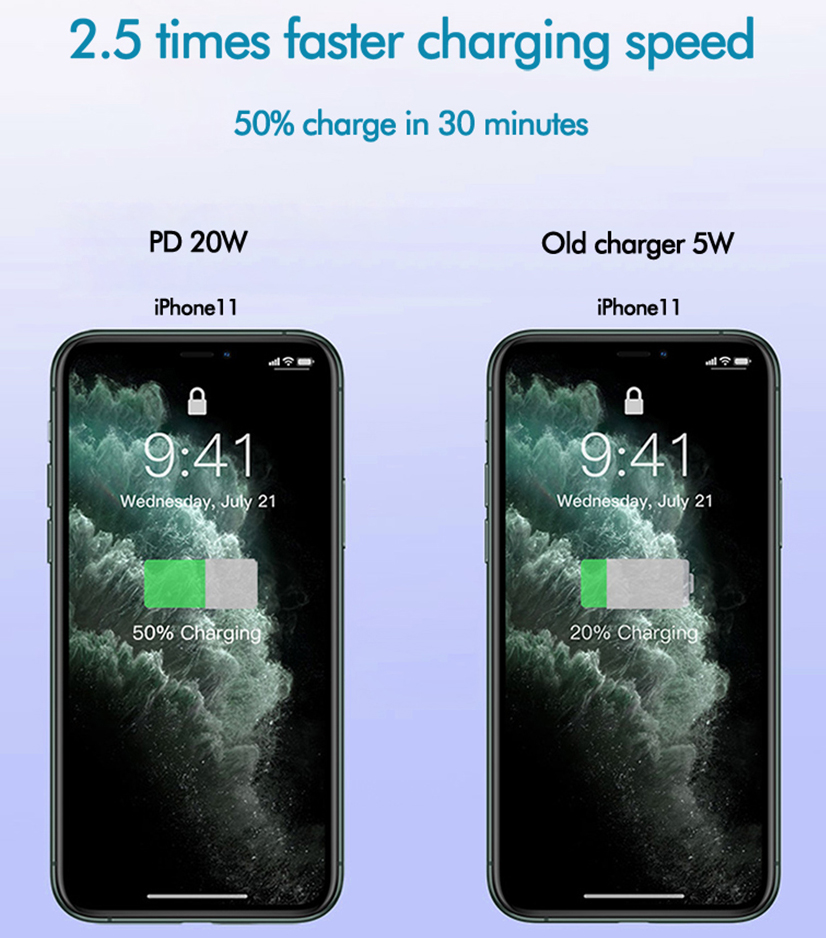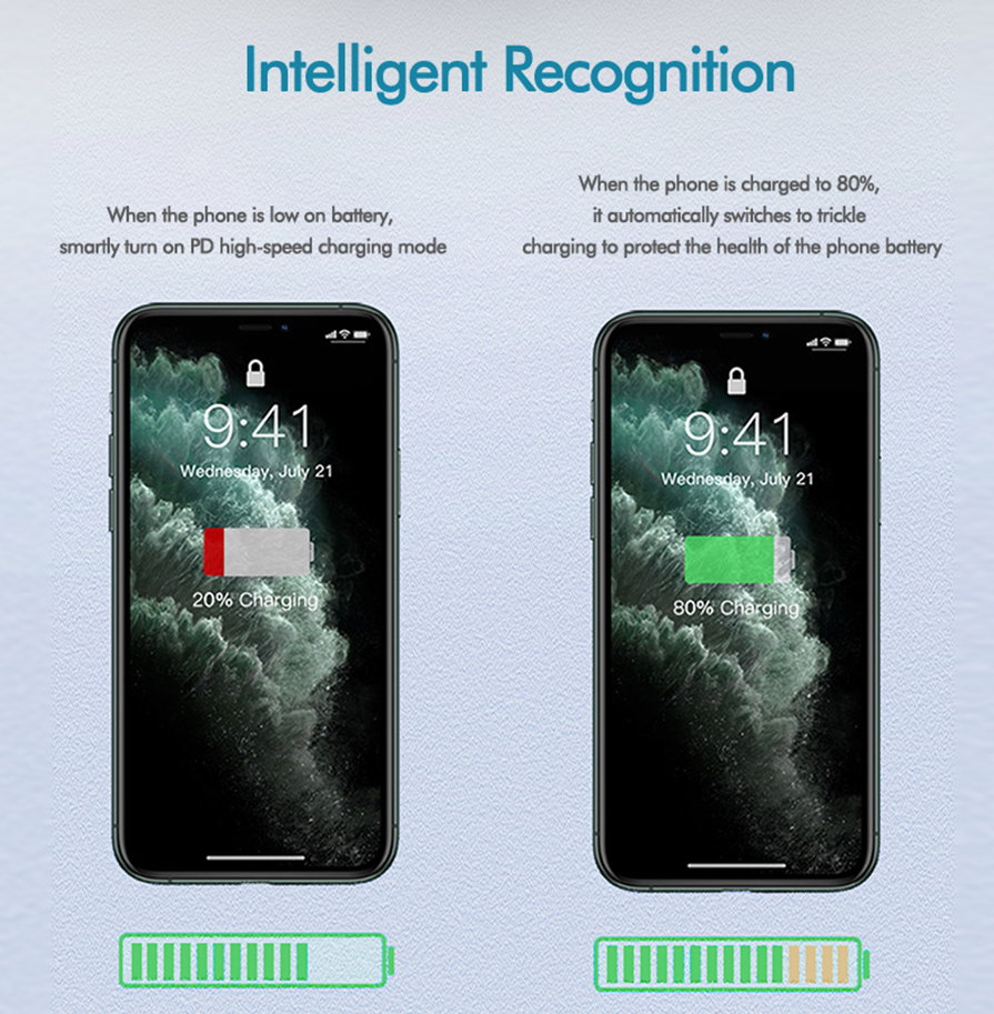 INTELLIGENT PROTECTION: Built-in overcurrent protection and overvoltage protection will keep your device safe. The charger can recognize when your phone battery is low and turn on high-speed PD charging mode. CE/ROHS/FCC certified.
