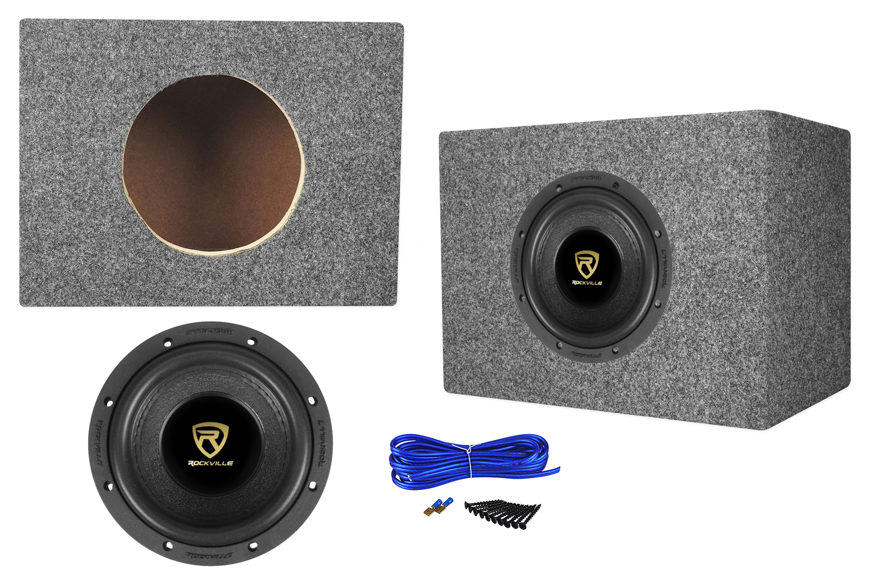 This accessory package includes everything you need to install one subwoofer into an enclosure, and wire to connect the enclosure to your amplifier. This package is a top of the line accessory package which we put together and tested.