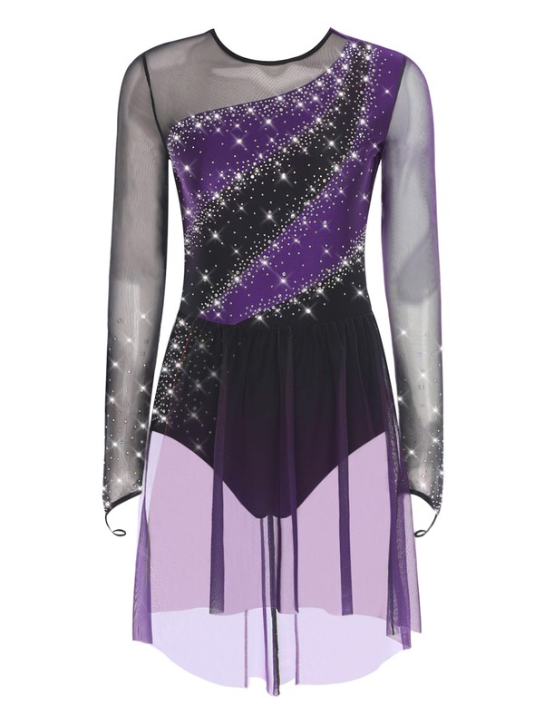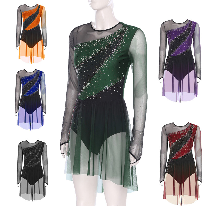 Crafted from a blend of polyester, nylon, sequins, and spandex, this leotard dress is stretchy, shiny, and comfortable, ensuring a flexible and stylish performance.