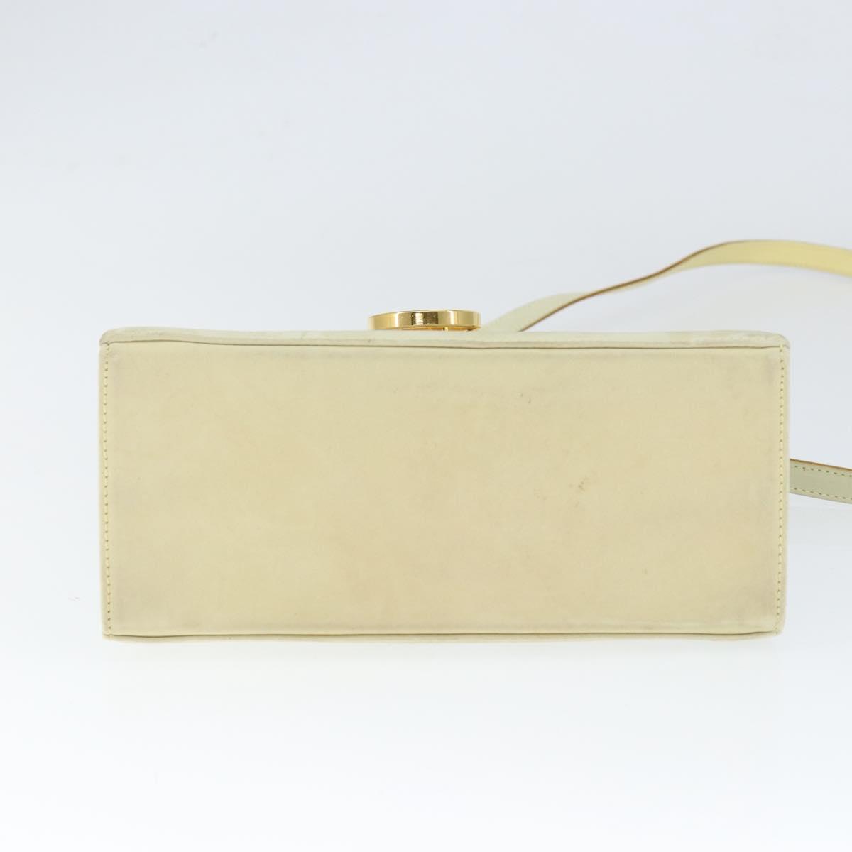 Salvatore Ferragamo Gancini Hand Bag Suede 2way Ivory Gold Auth 149146