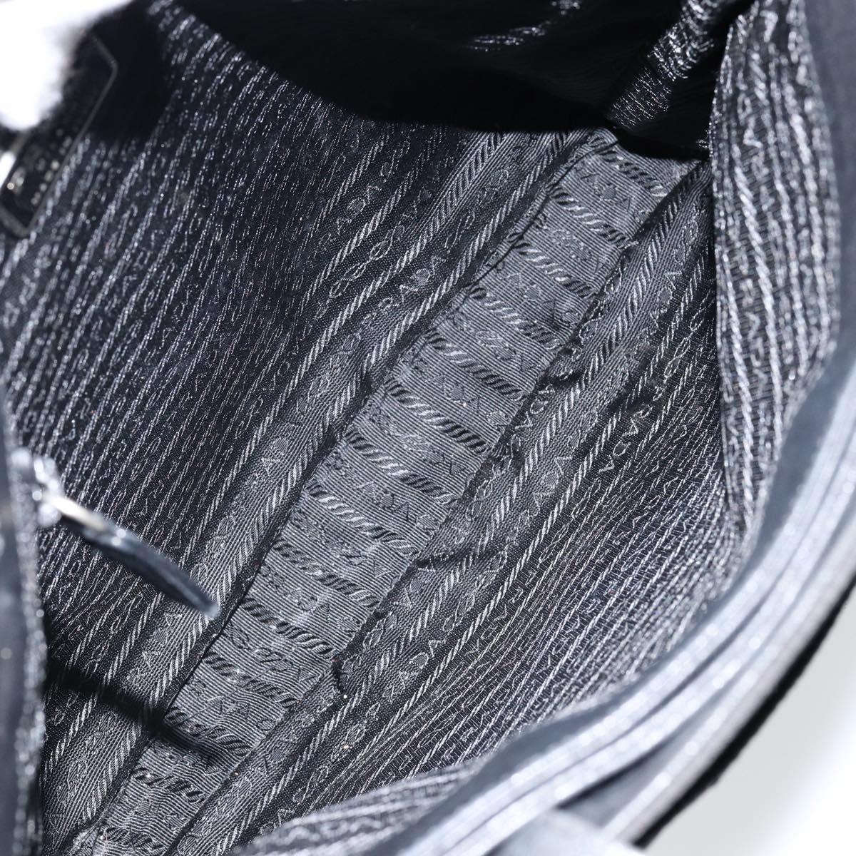 PRADA Hand Bag Nylon Leather Black Silver Auth gh1069