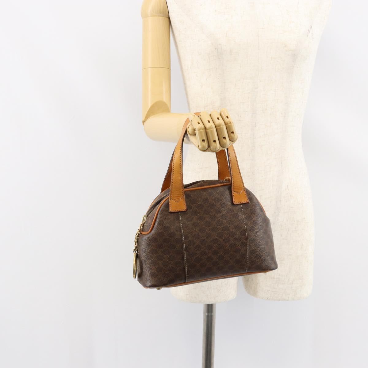 CELINE Macadam Canvas Hand Bag PVC Leather Brown Gold Auth ep11630