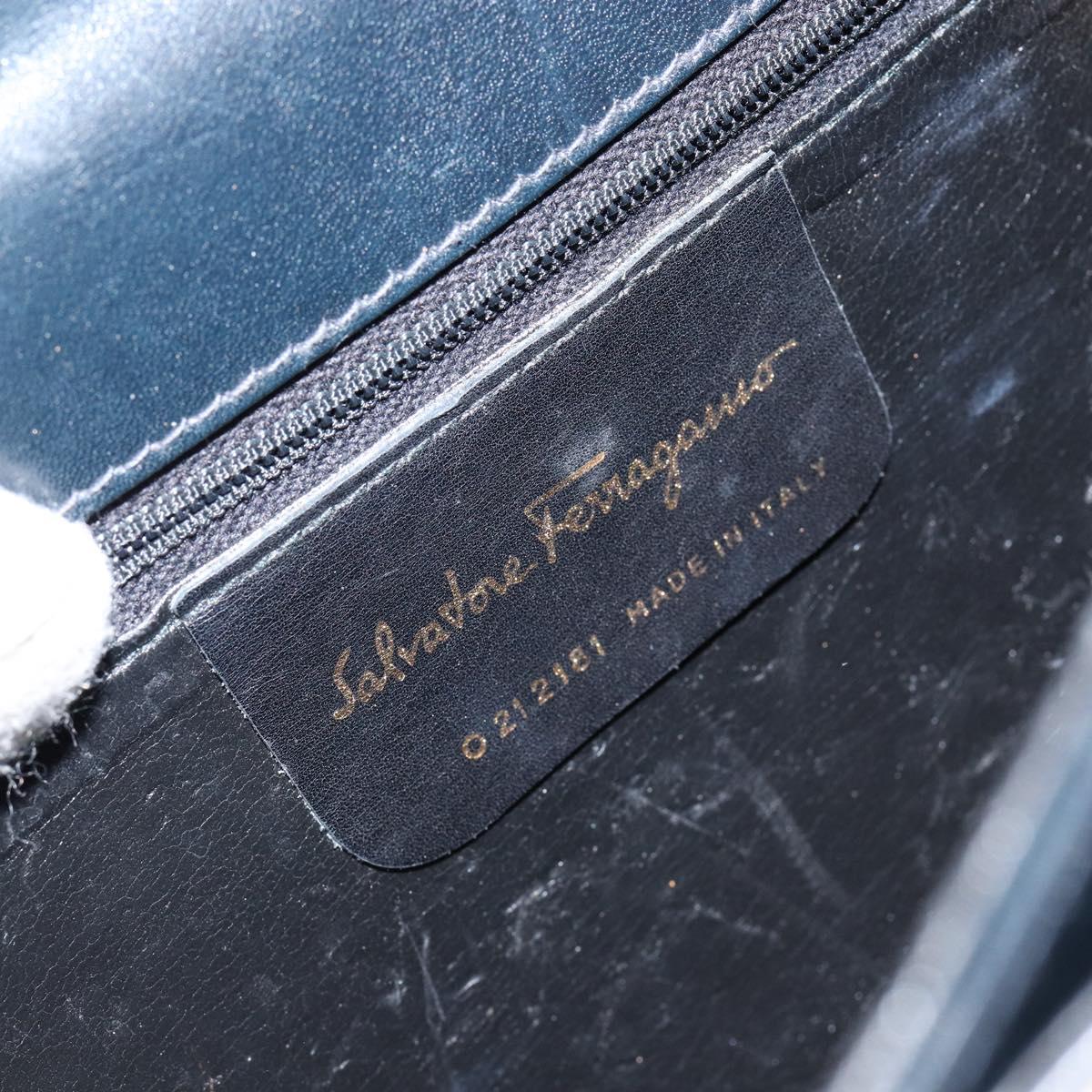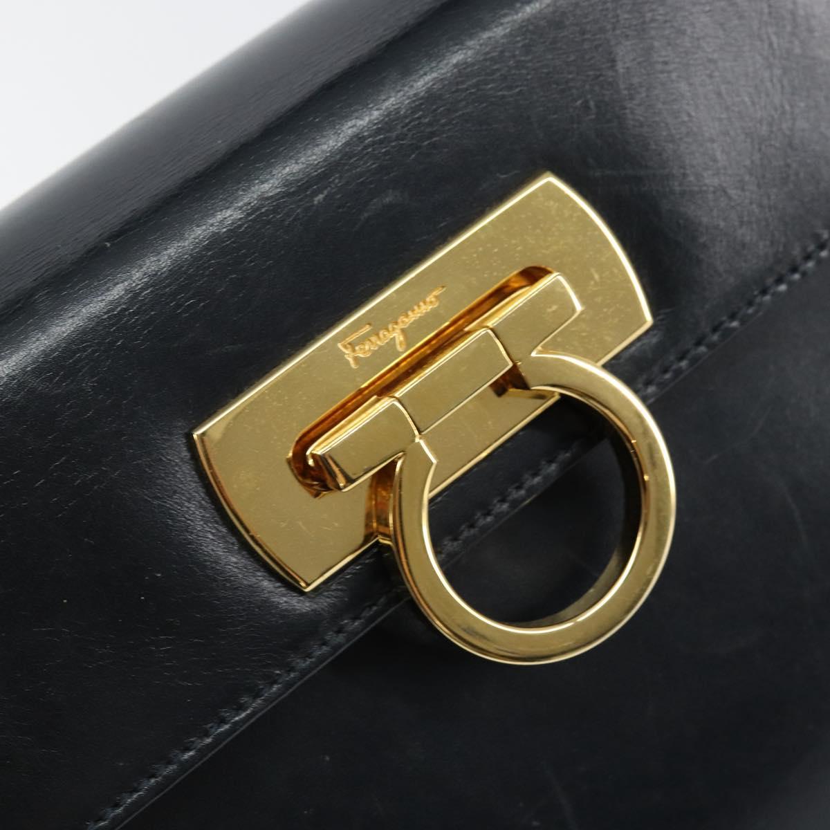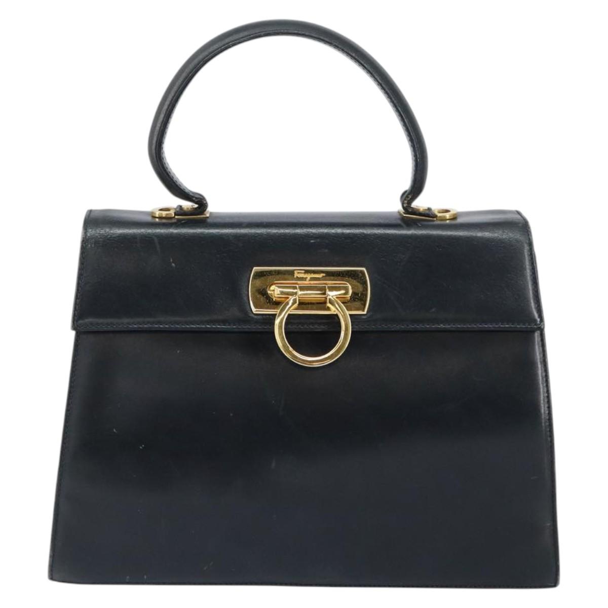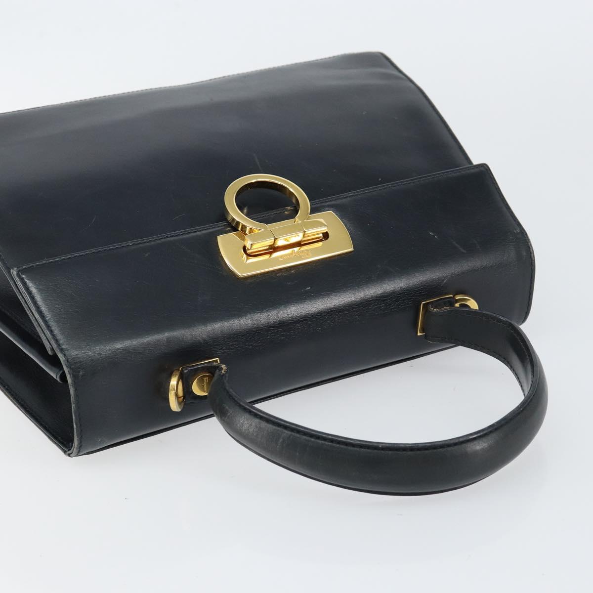 Salvatore Ferragamo Gancini Hand Bag Enamel Navy Gold Auth 149268