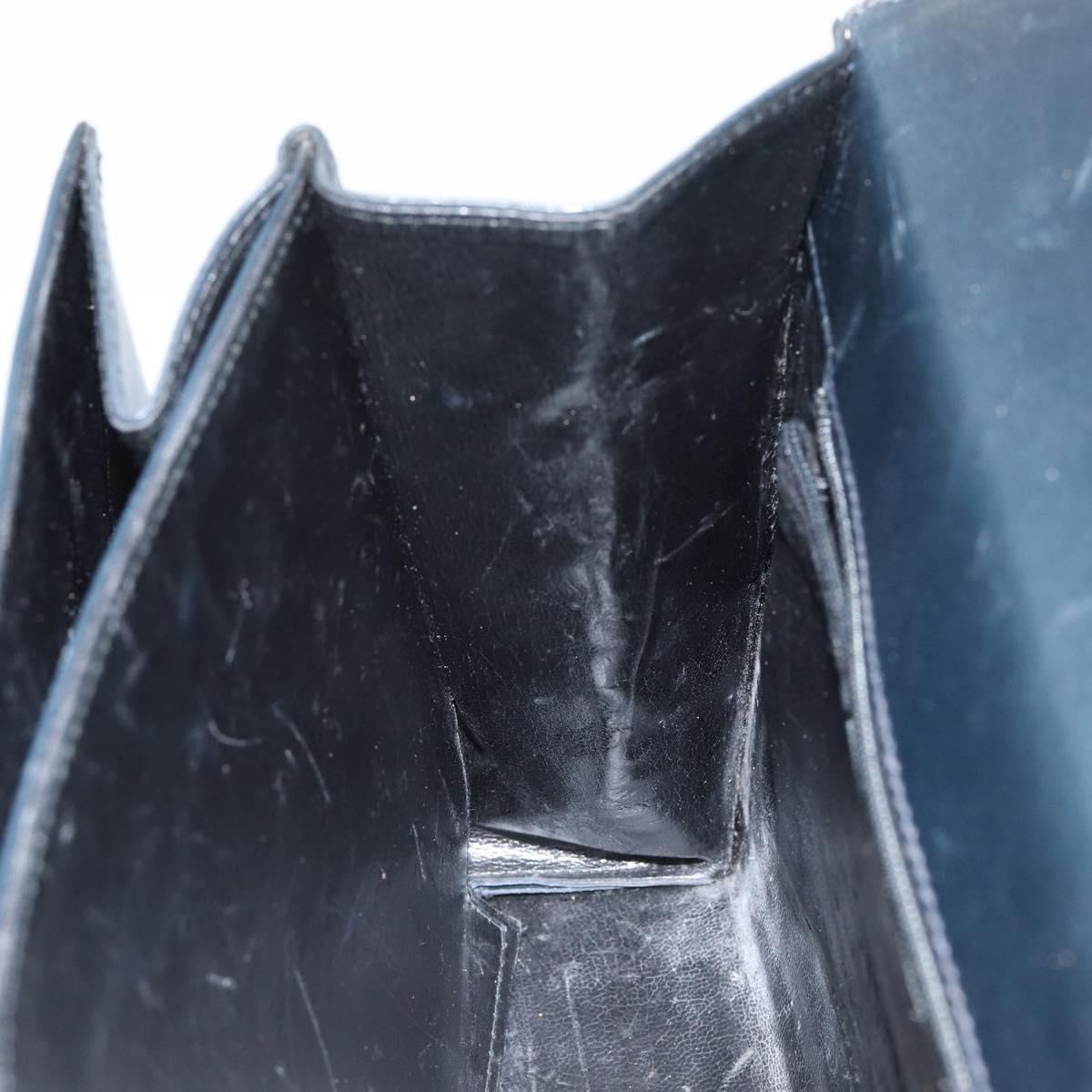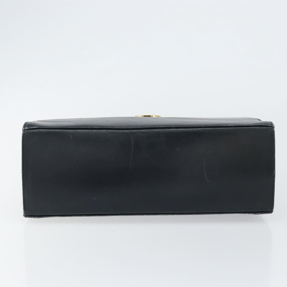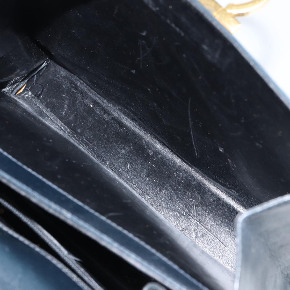 Salvatore Ferragamo Gancini Hand Bag Enamel Navy Gold Auth 149268