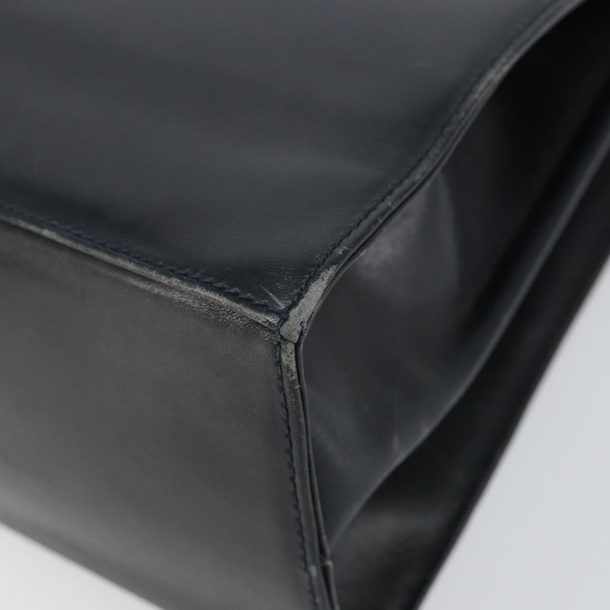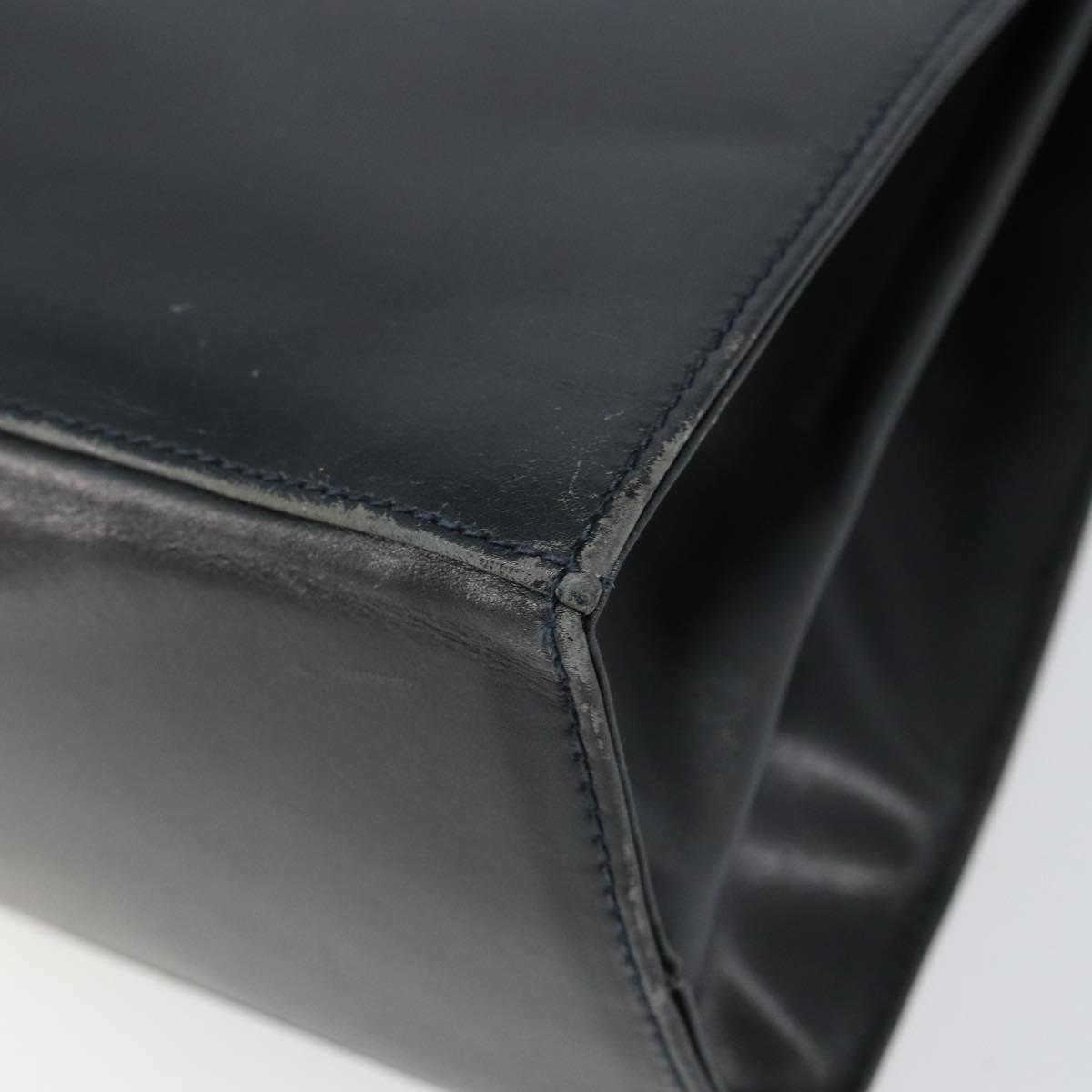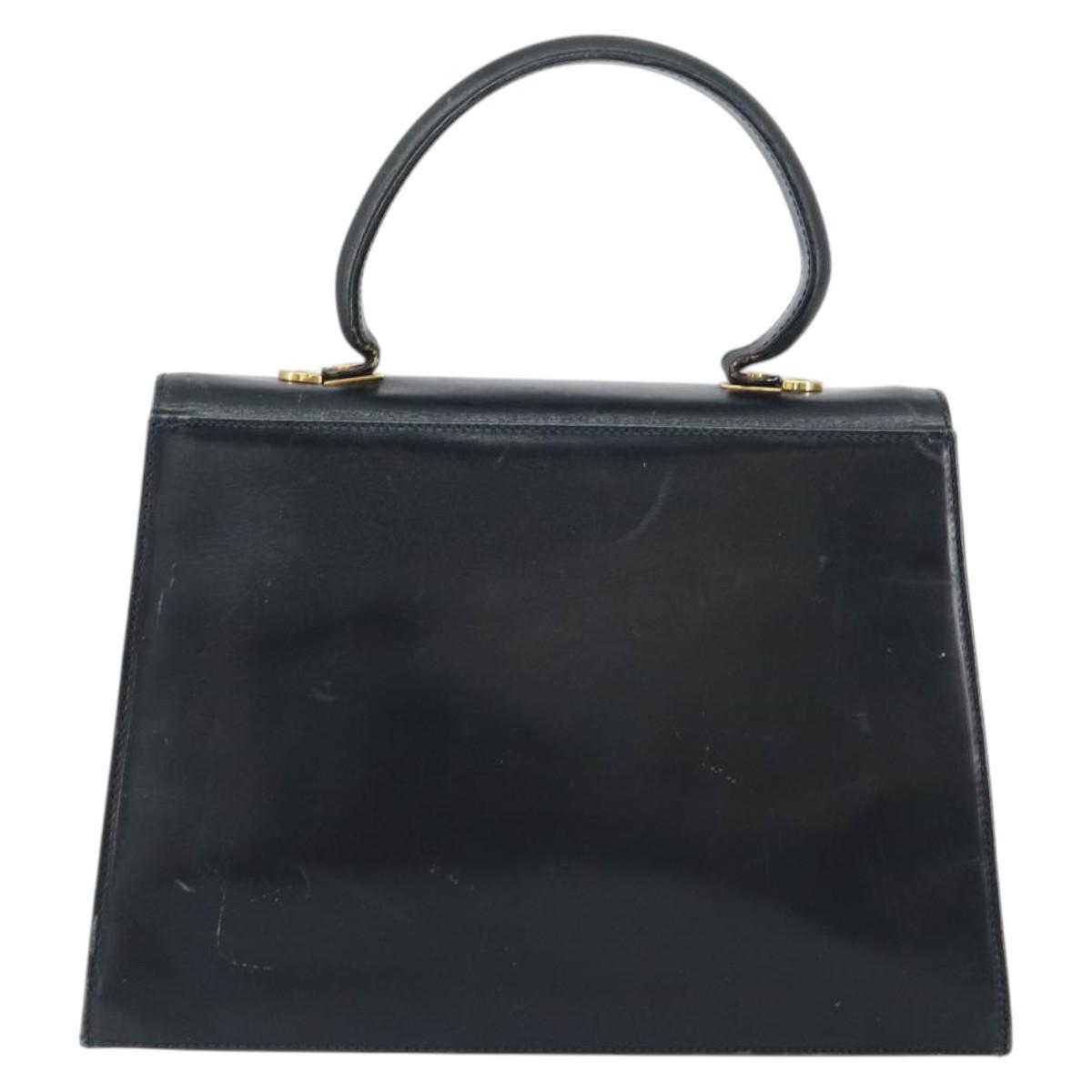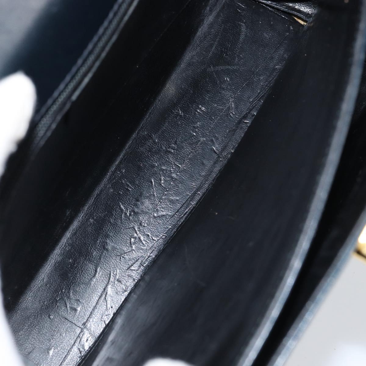 Salvatore Ferragamo Gancini Hand Bag Enamel Navy Gold Auth 149268