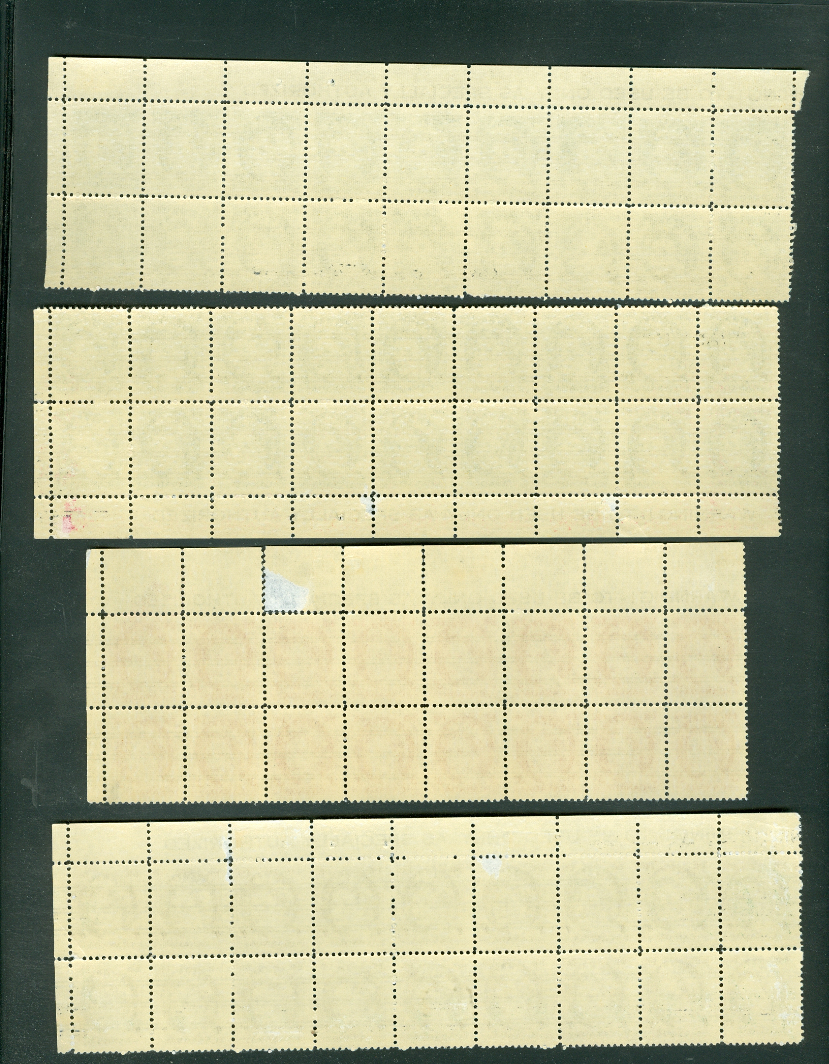 CANADASEL OF 4 WILDING PRECANCEL MARGIN STRIPS. 2c & 3c SOME SEPARATION AND THINS IN MARGIN O/W F. Front and back shown.