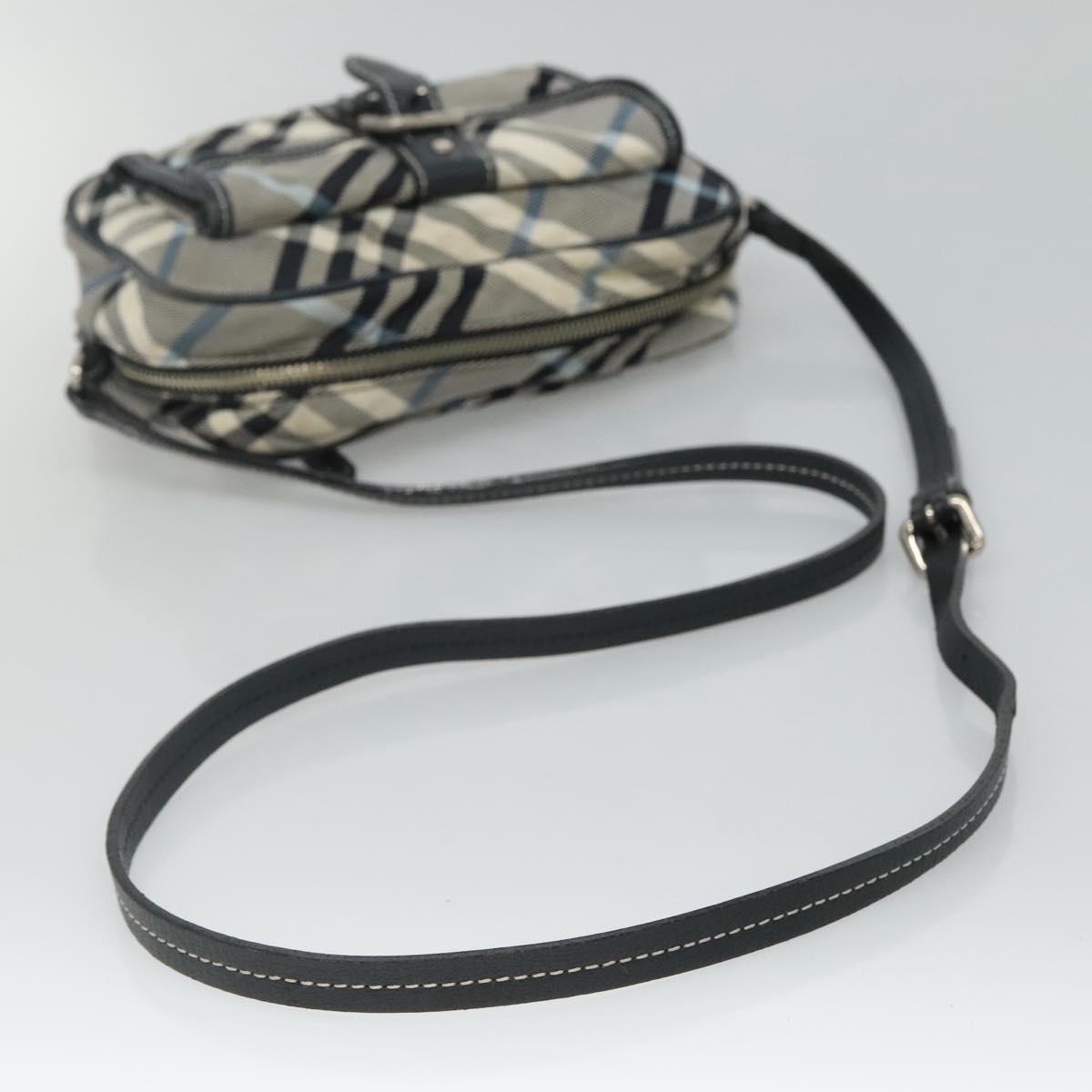 BURBERRY Nova Check Blue Label Shoulder Bag Nylon Blue Silver Auth JB055