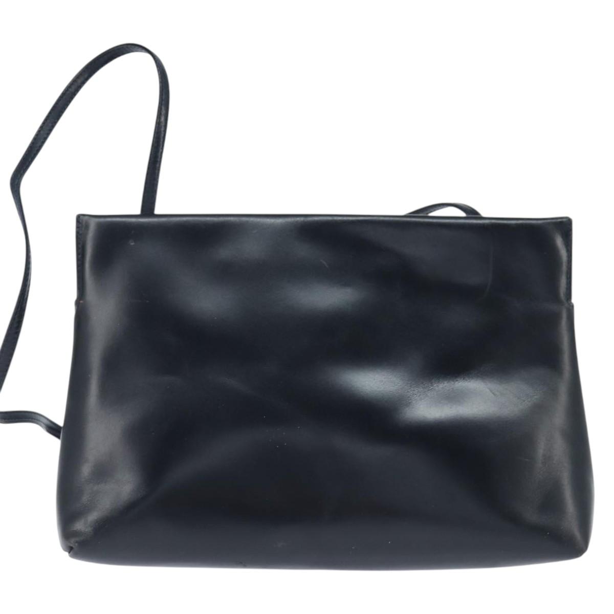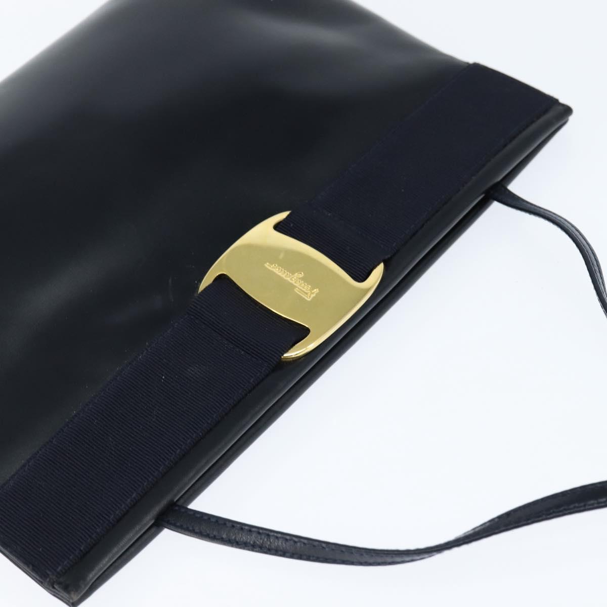 Salvatore Ferragamo Vala Shoulder Bag Leather Navy Gold Auth bs30511