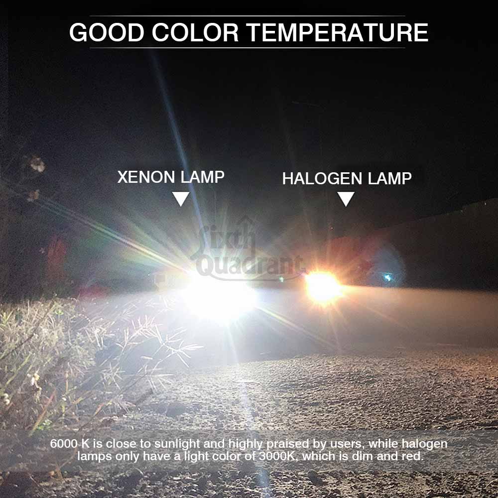 4.Good color temperature: 6000 K is close to sunlight and highly praised by users, while halogen lamps only have a light color of 3000K, which is dim and red.