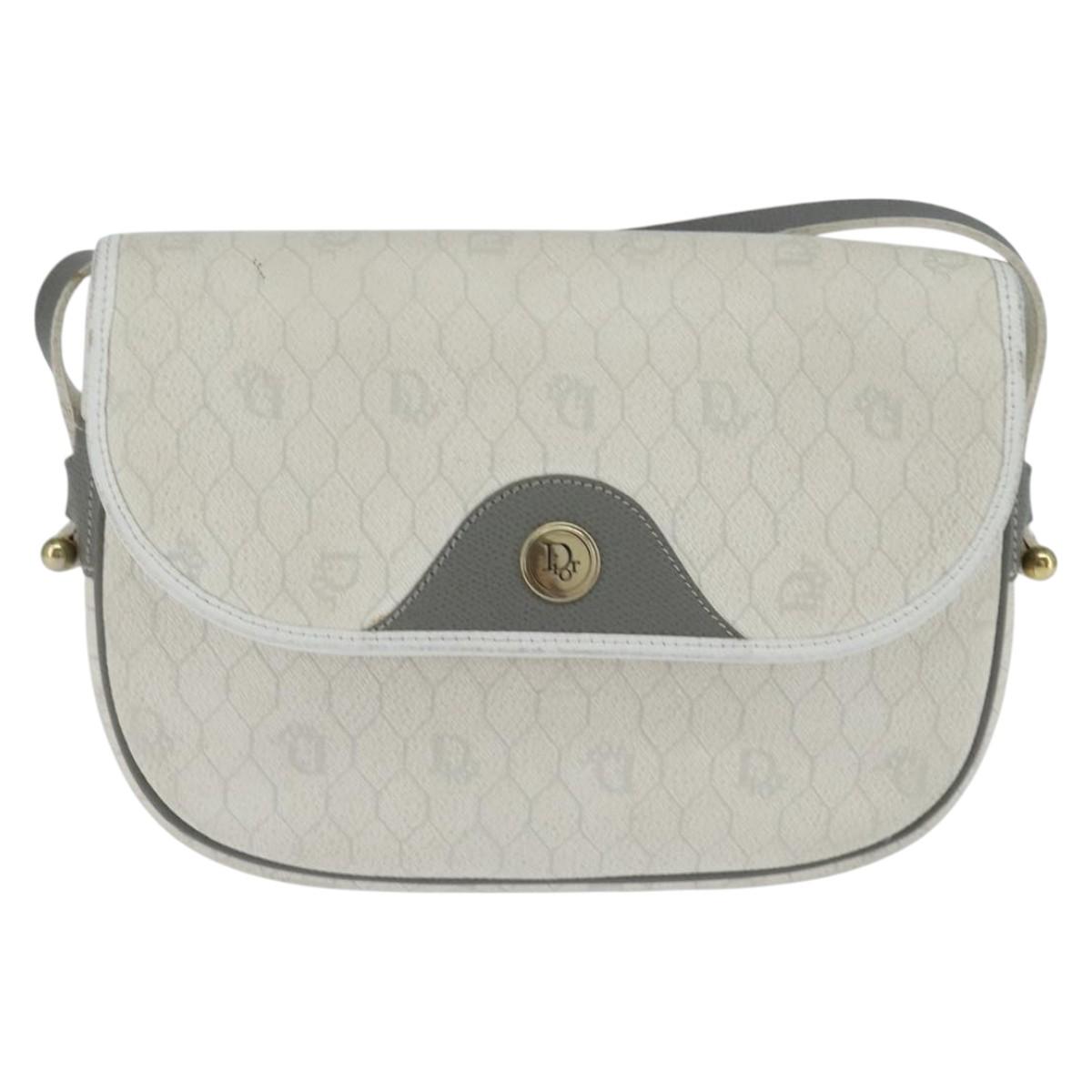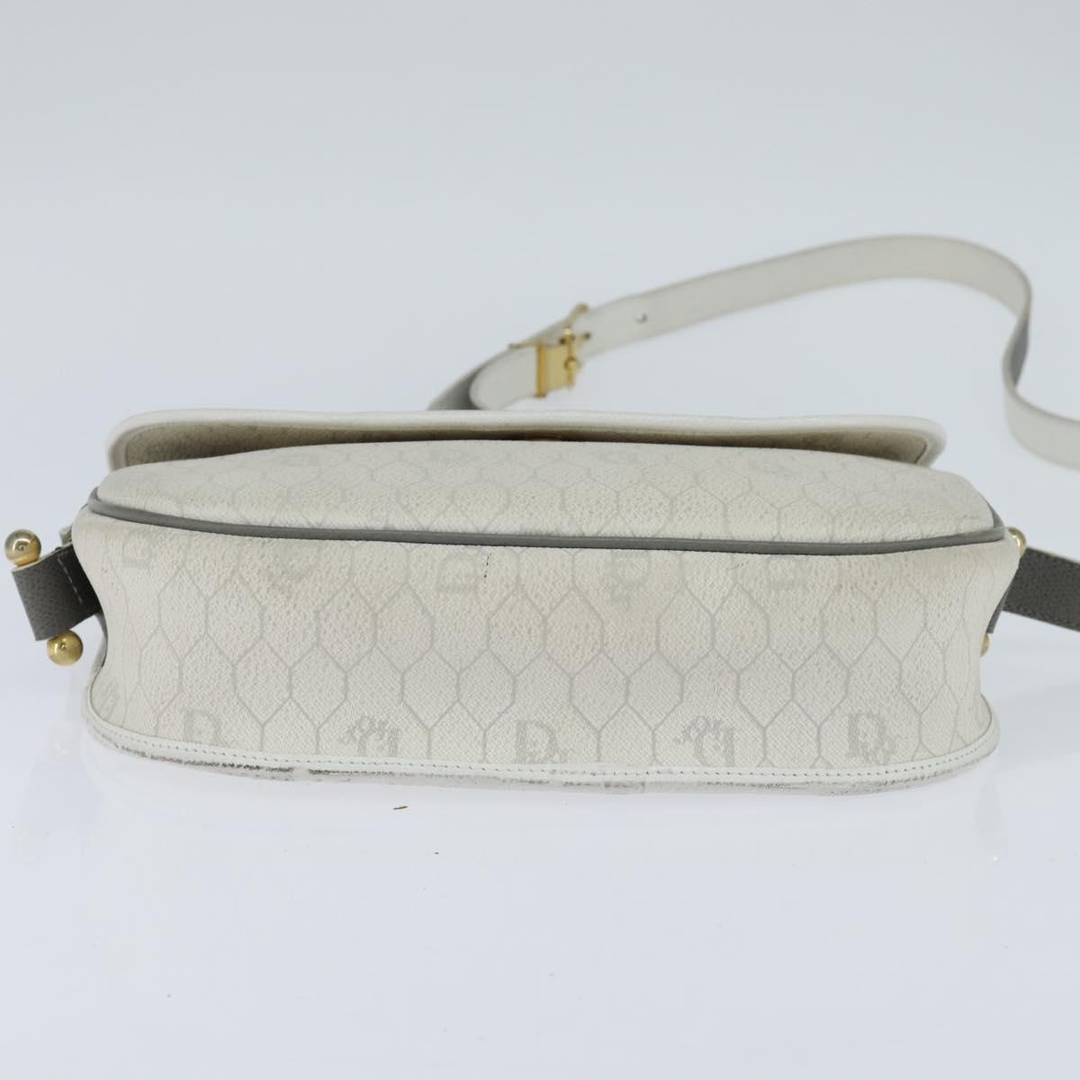 Christian Dior Honeycomb Canvas Shoulder Bag PVC White gold Auth BA7505