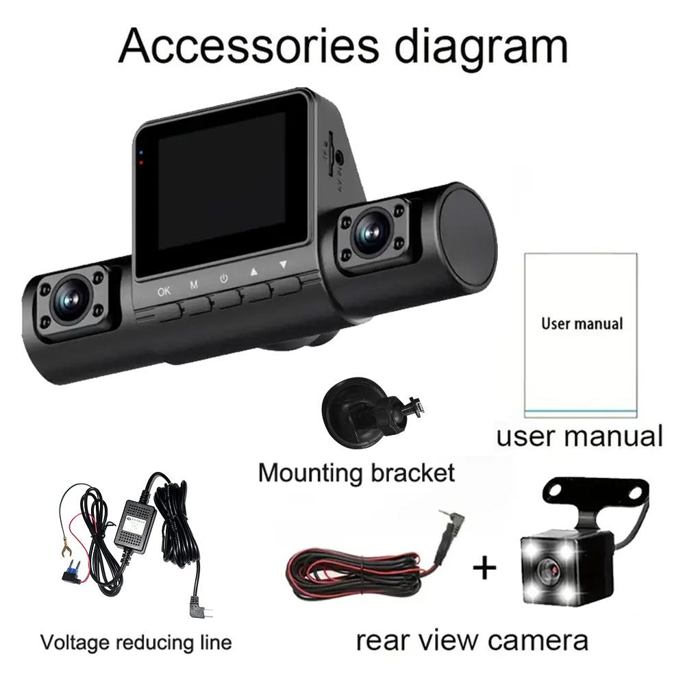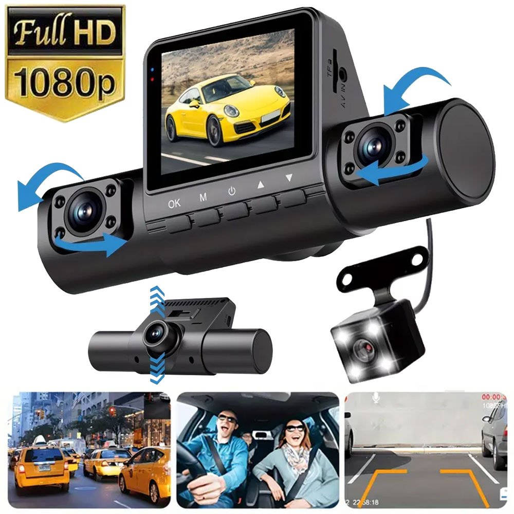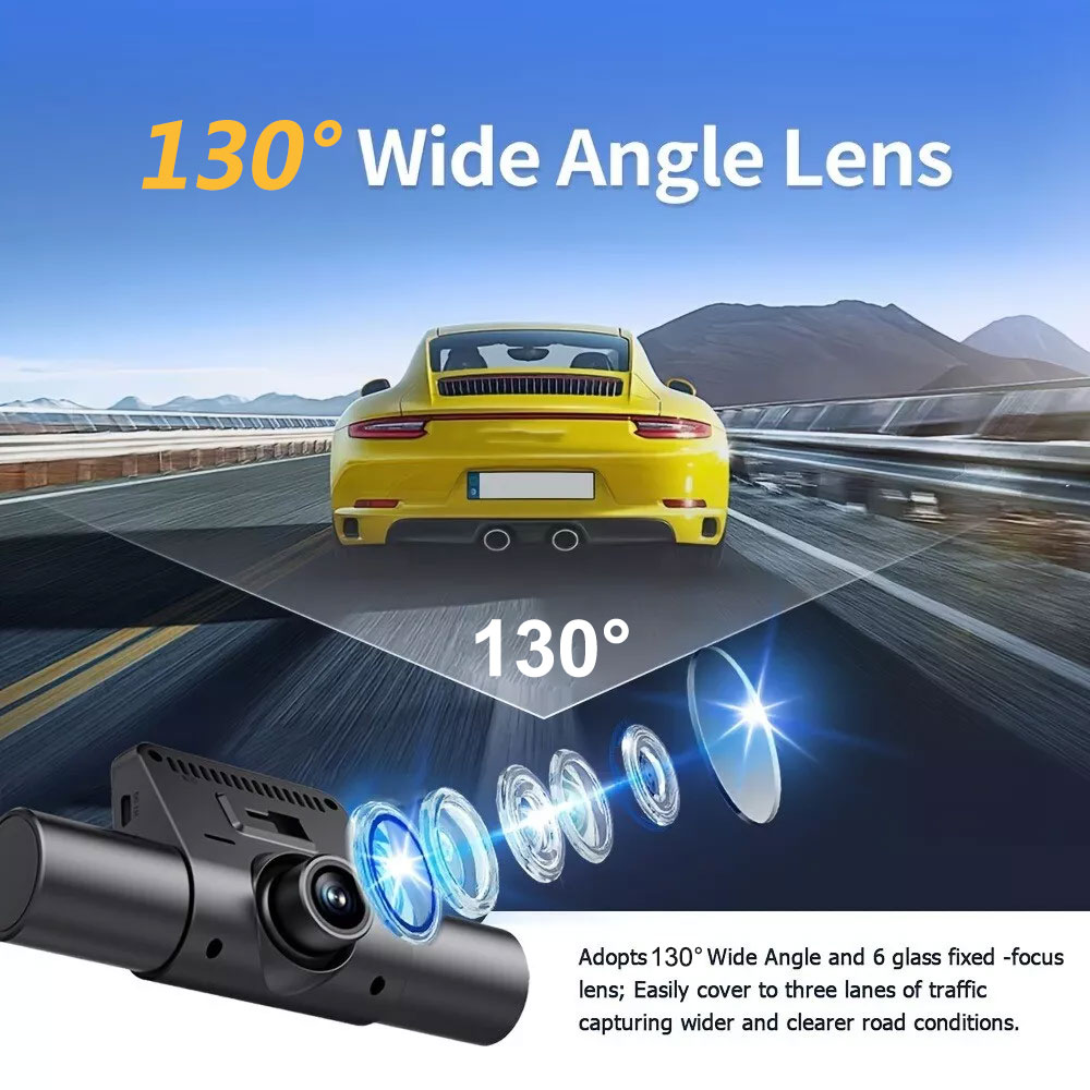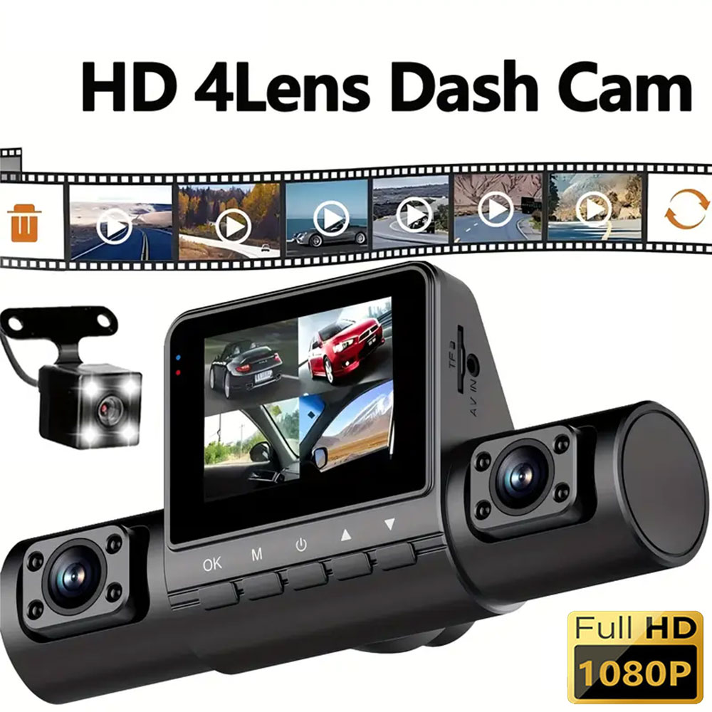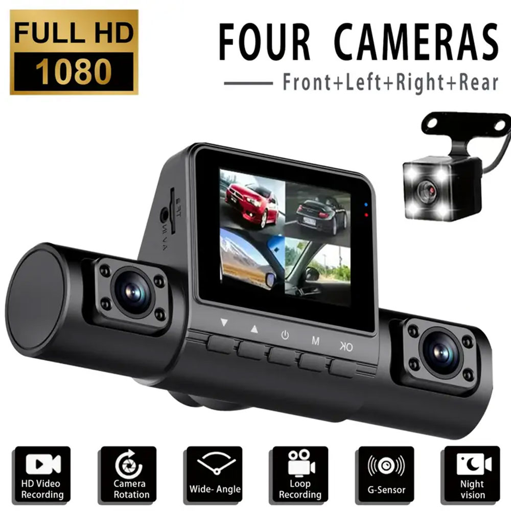 [4-channel dash cam, front, back, left, right] The 4-channel dash cam has 4 lenses, all of which can simultaneously record FHD 1080P videos. It can simultaneously capture the front, rear, left, and right sides of the vehicle. The first three lenses can adjust the shooting angle, so you can capture more details as you wish. It can easily cover 360 degrees, ensuring that there are no blind spots around the car. You can use a camera to capture the interior of the vehicle.