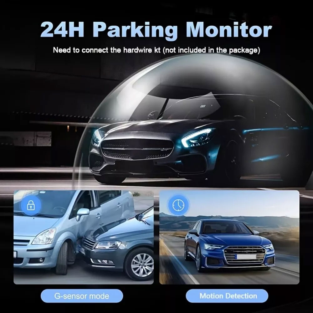 The delay function of the dashboard camera records videos at a rate of one frame per second and compresses the 60 minute video interval to one minute in parking mode to save storage card space and achieve faster playback. The ACC hard wired kit is necessary and has low voltage protection function, which will not deplete the car battery.