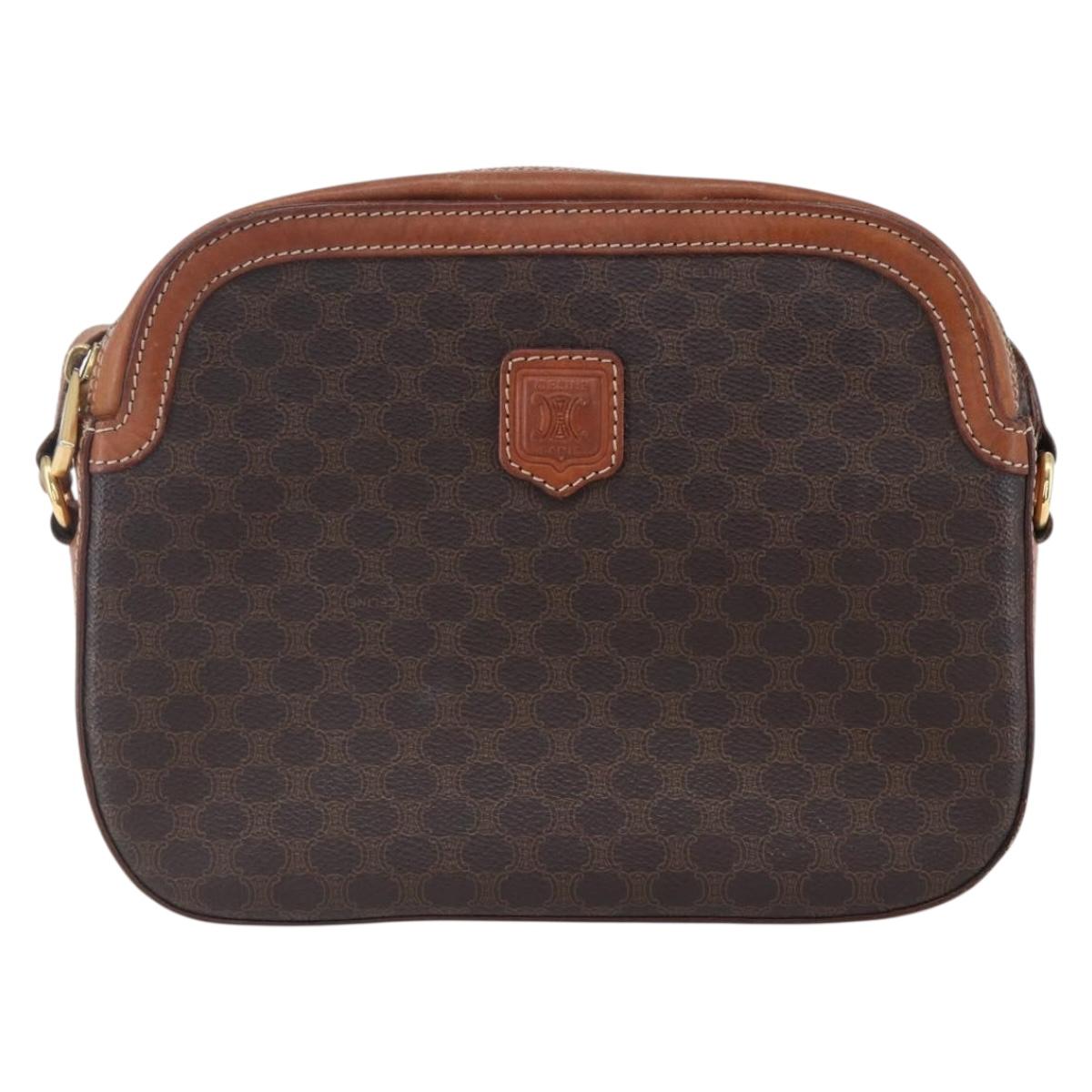 CELINE Macadam Canvas Shoulder Bag PVC Leather Brown Gold Auth ki6137
