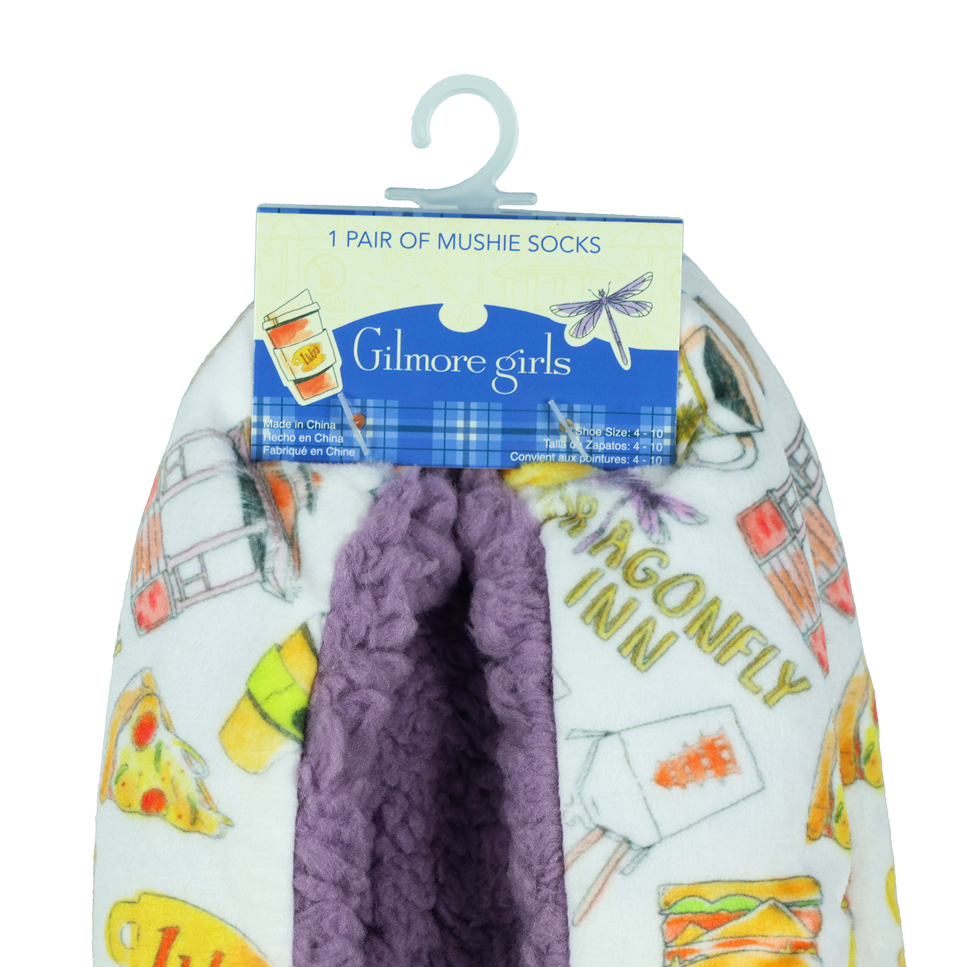 Step into some serious cozy vibes with these Gilmore Girls Mushies slipper socks. Covered in an all-over design of pizza slices, takeout boxes, Luke’s Diner coffee mugs, and the Dragonfly Inn, they let you show off your fandom while keeping your feet ridiculously soft and warm. Inside, the plush fleece lining feels like a gentle hug with every step—ideal for lounging around or just relaxing after a long day.