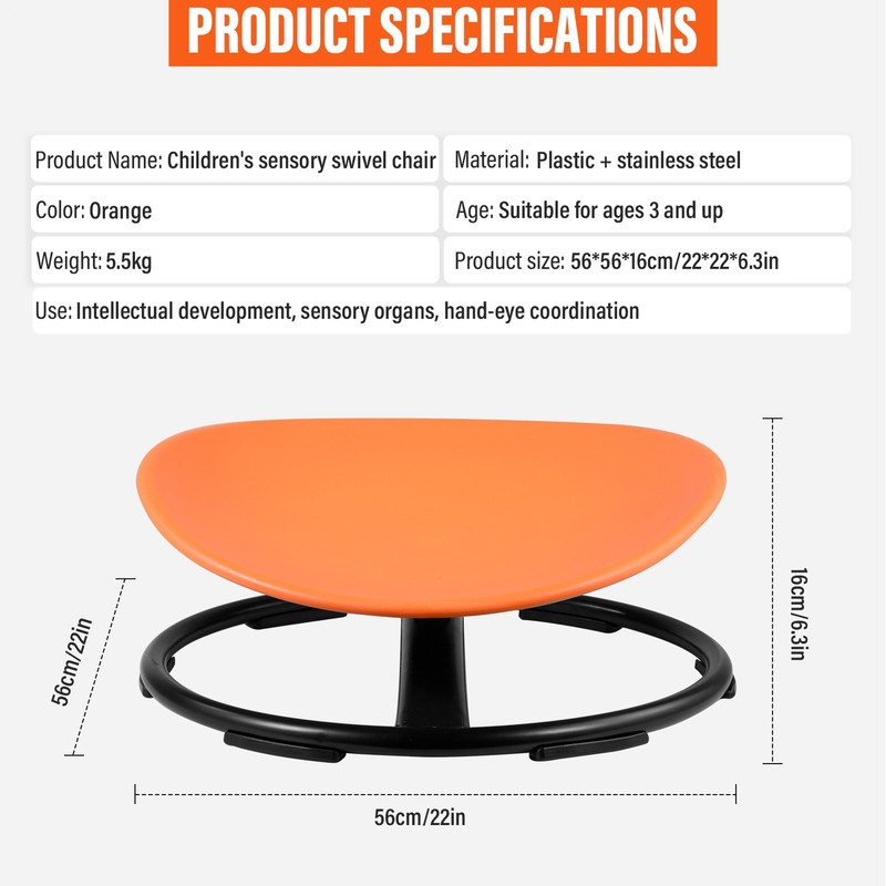 Rotatable design: The 360 rotation of the ergonomic spinning chair gently stimulates the vestibular system, fostering a more natural and smooth movement pattern, making it ideal for children's sensory development.