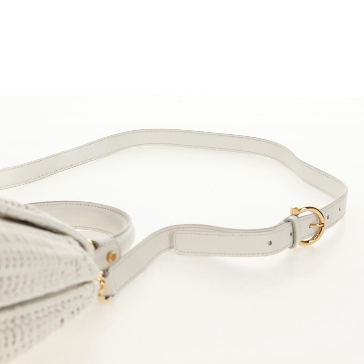 Salvatore Ferragamo Gancini Hand Bag Rattan 2way White Gold Auth 150815AV