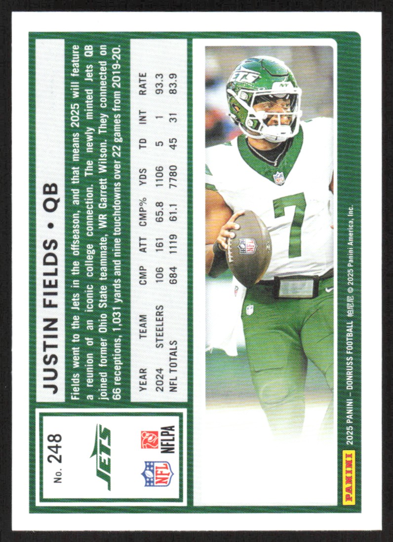 | 2025 Donruss Press Proofs Justin Fields New York Jets #248 Red |
