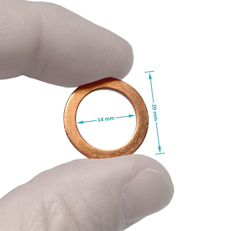 - This kit contains 20PCS flat ring seals. These sealing washers and gaskets are made of high quality copper, solid and durable. They have excellent electrical conductivity and thermal conductivity. Great kit for sump plugs, water, fuel and hydraulic fittings. Perfect for electrical connections on household and commercial appliances, automotive and marine uses in which the power source has a threaded/ bolt-type connection.