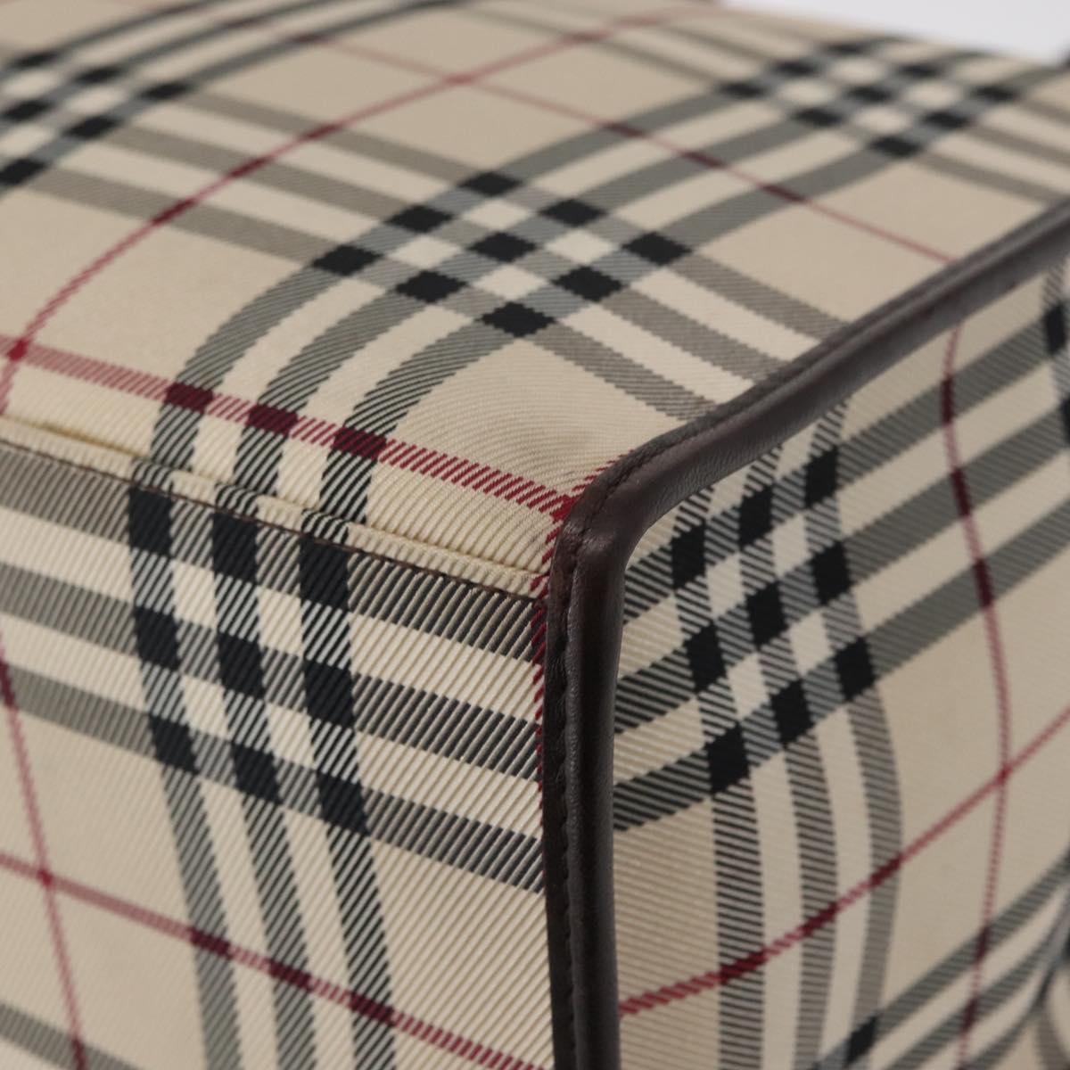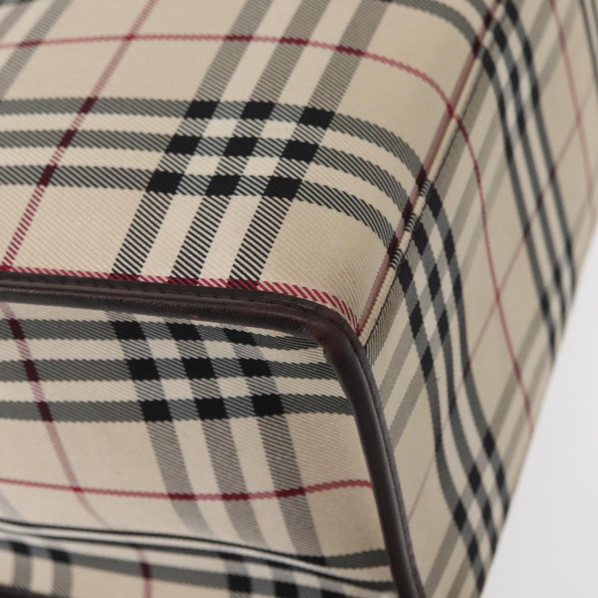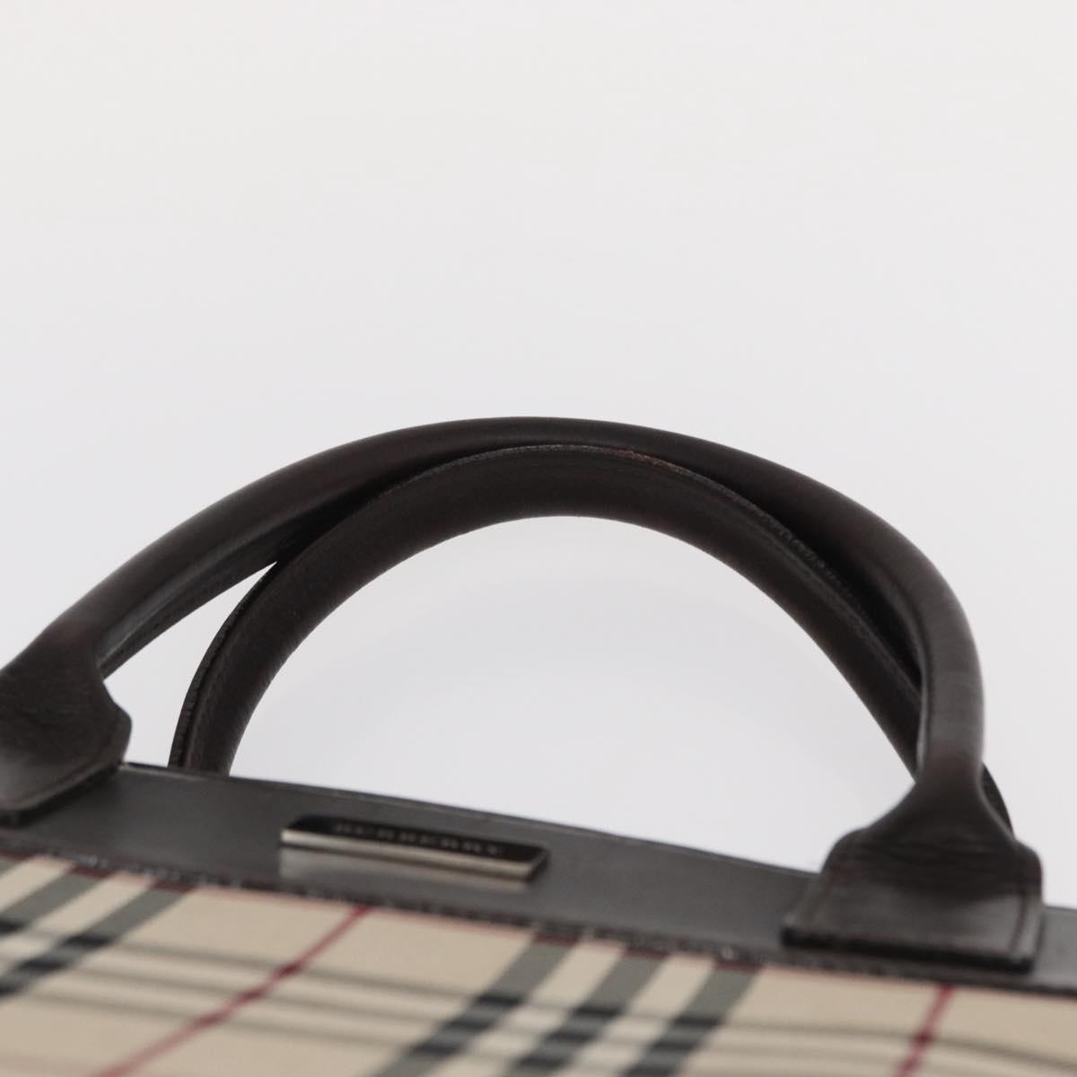 BURBERRY Nova Check Hand Bag Canvas Beige Silver Auth ka042