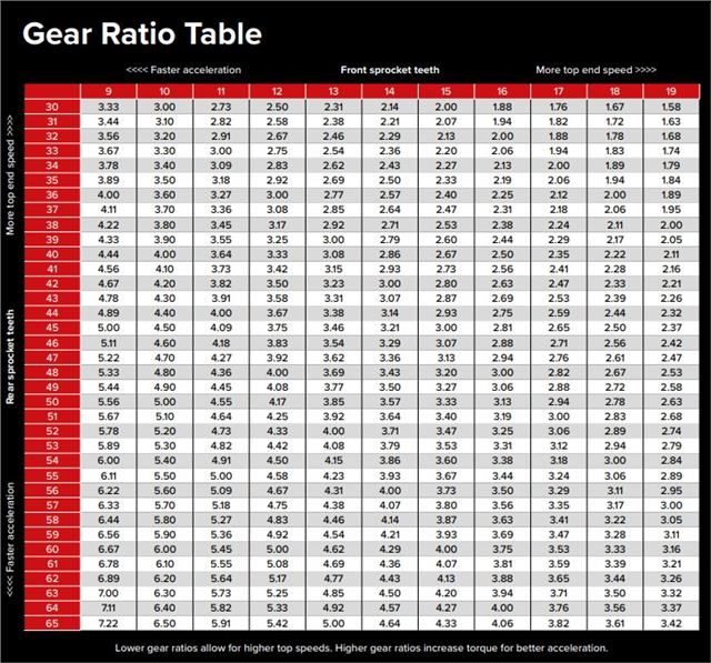 Increasing the front sprocket size by 1 tooth will give you more top end speed. The lower gear ratios allow for higher top speeds, compared to higher gear ratios that increase torque for better acceleration.