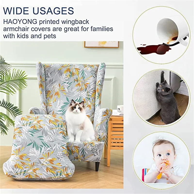 MATERIAL - Wing chair cover is made of high stretch polyester and spandex printed fabric, breathable and comfort while you seat and ensuring good function as well.