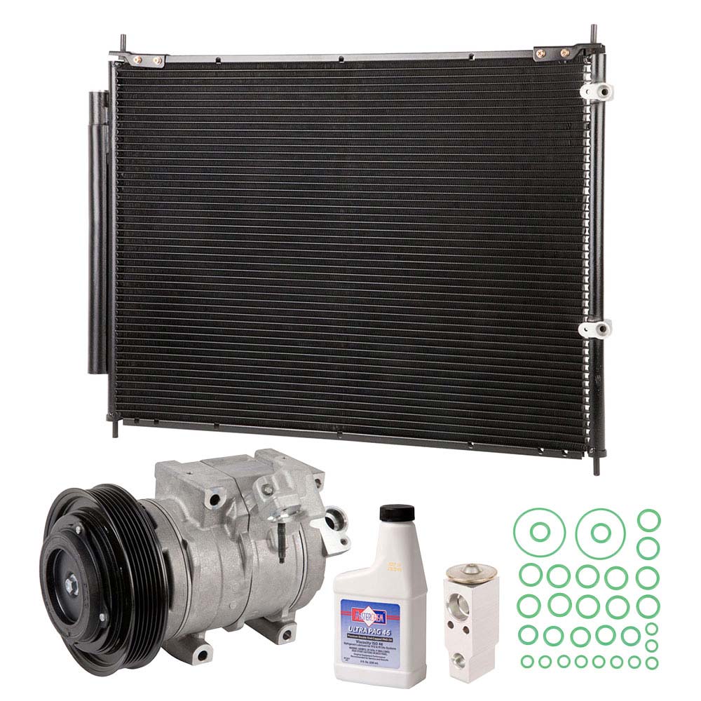 This 5 piece Premium Installers AC Kit includes an OEM new AC compressor, condenser with built in accumulator/drier, expansion device, a bottle of AC compressor oil and a pack of the correct o-rings for your system to prevent leaks. This kit is designed to include all of the right parts to make the repair process easier and save you money. The accumulator/drier used in your AC system is built into the condenser, so to make things easier this kit includes a new condenser with built in accumulator/drier.