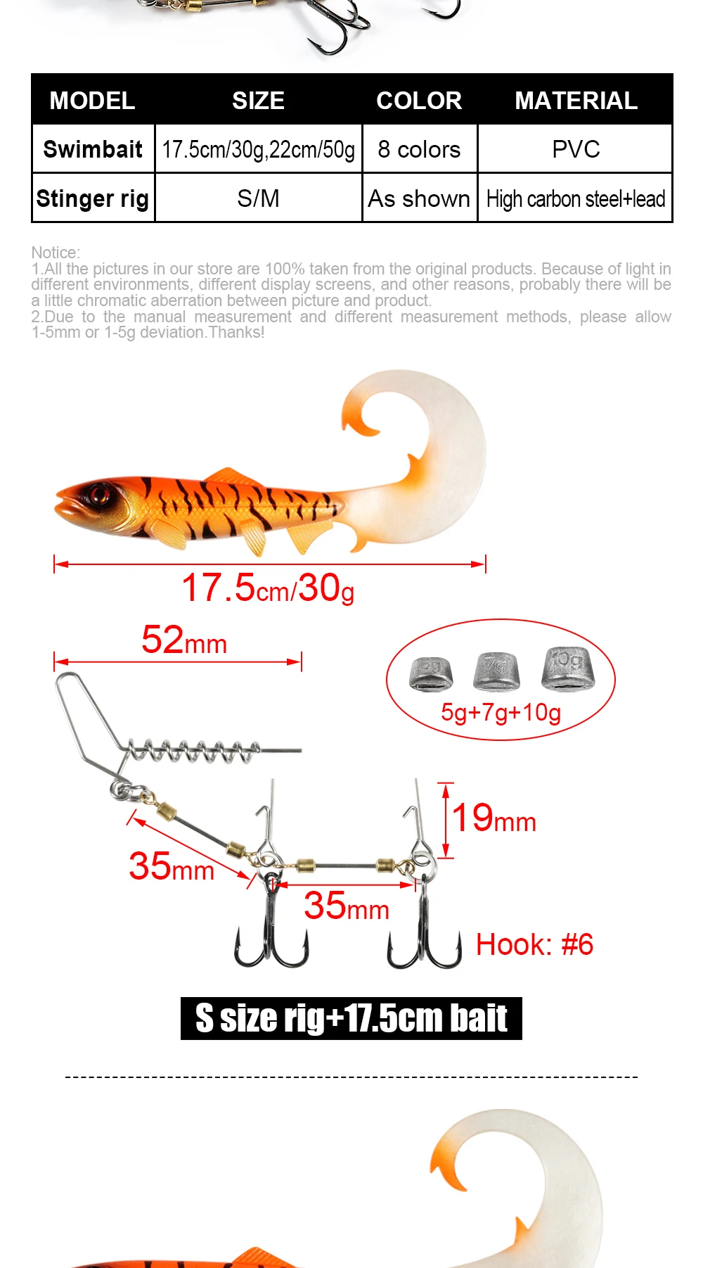 Spinpoler Firebomb Swimbait With Stinger Rig Hook Fishing Kit Long Tail Grub Soft Lure Sinker Weight For Pike Big Game Fake FishFirebomb With the Pike Systerm Rig kit